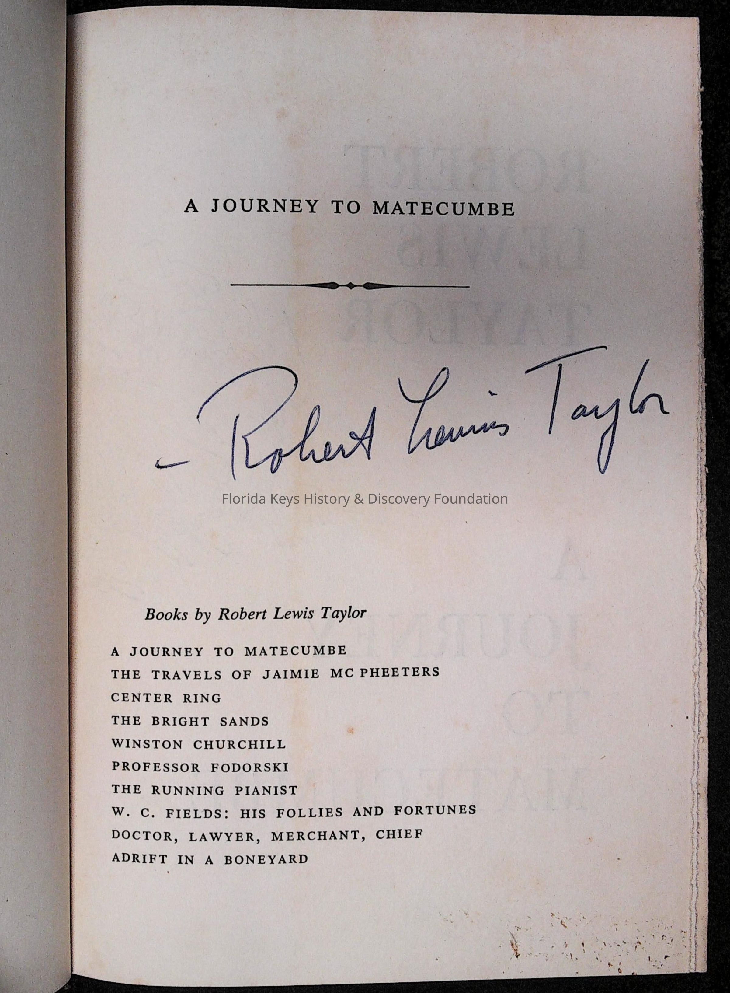 "A Journey to Matecumbe" by Robert Lewis TaylorEntry/Object ID