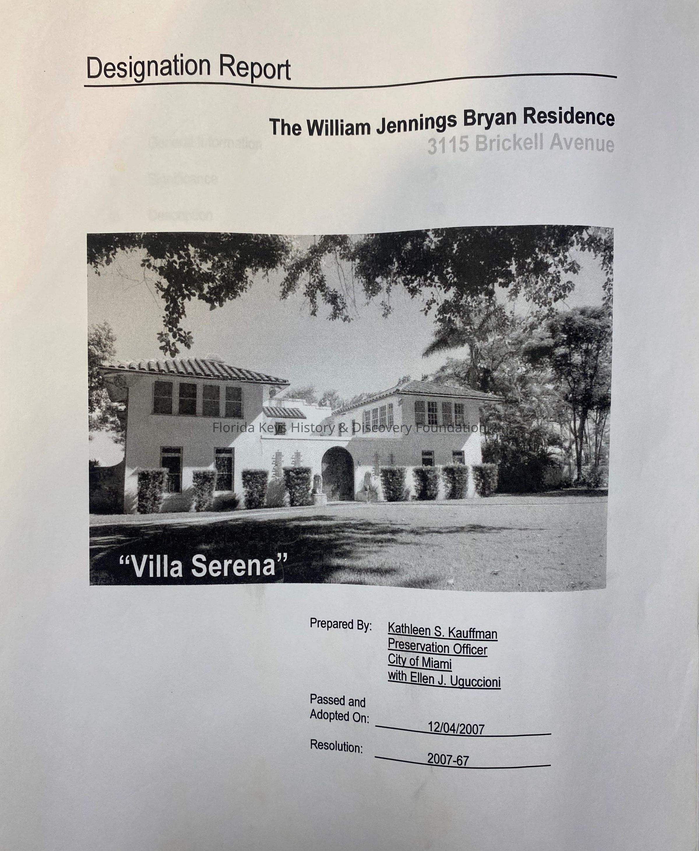 Correspondence, web print outs and historical documents related to Villa Serena, a former residence of politician William Jennings BryanCollection