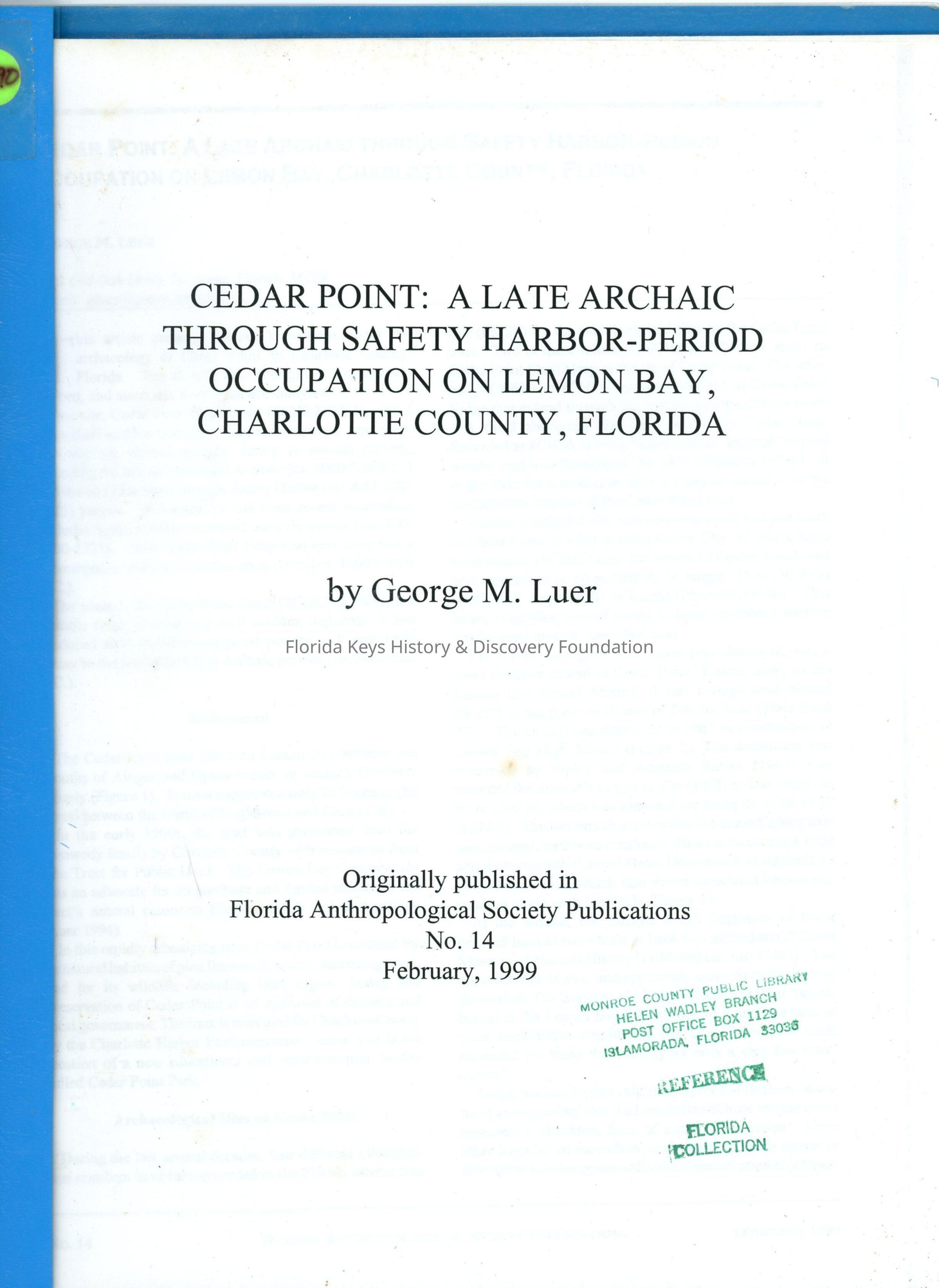 Cedar Point: A Late Archaic Through Safety Harbor-Period occupation on Lemon Bay, Charlotte County, FloridaEntry/Object ID