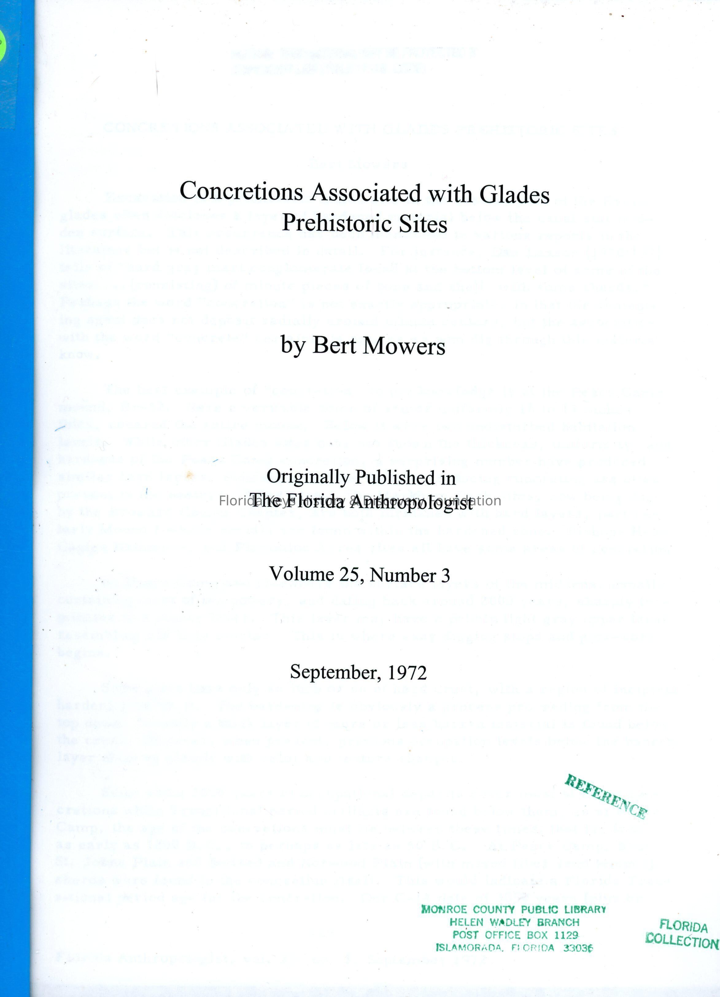 Concretions Associated with Glades prehistoric SitesEntry/Object ID
