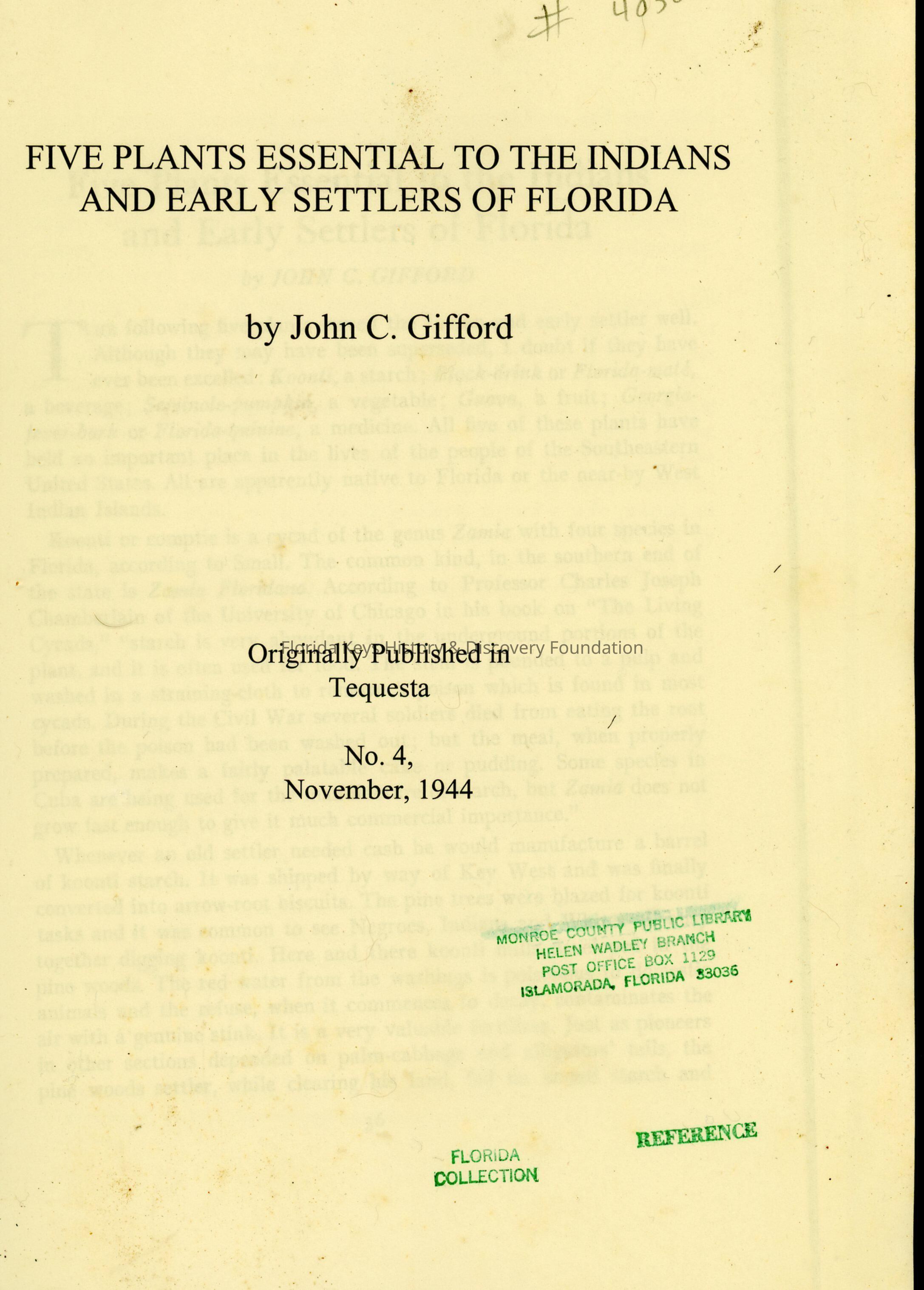Five Plants Essential to the Indians and Early Settlers of FloridaEntry/Object ID