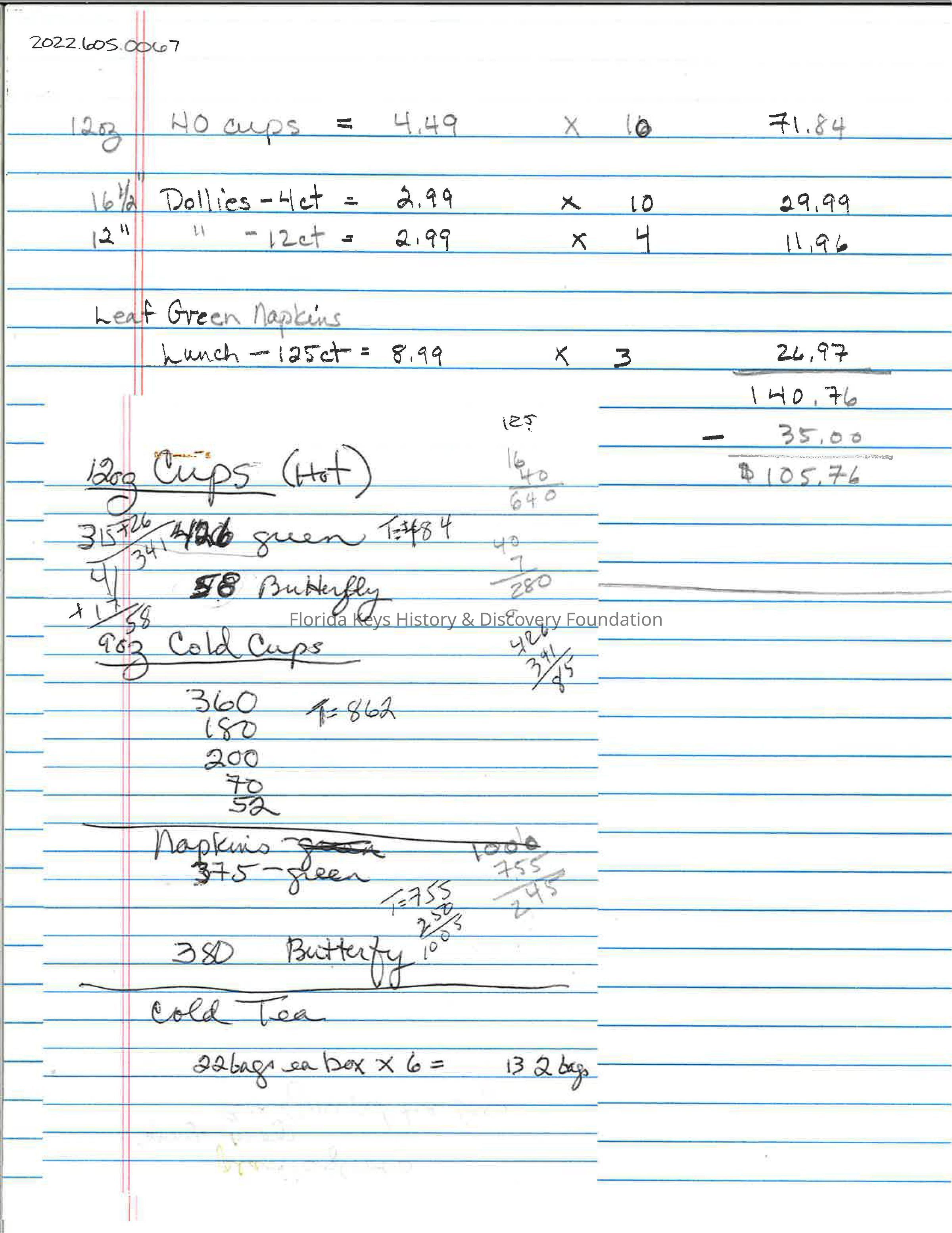 An undated handwritten note about the pricing of items and how many the garden club would need. This probably pertains to the Garden Walk