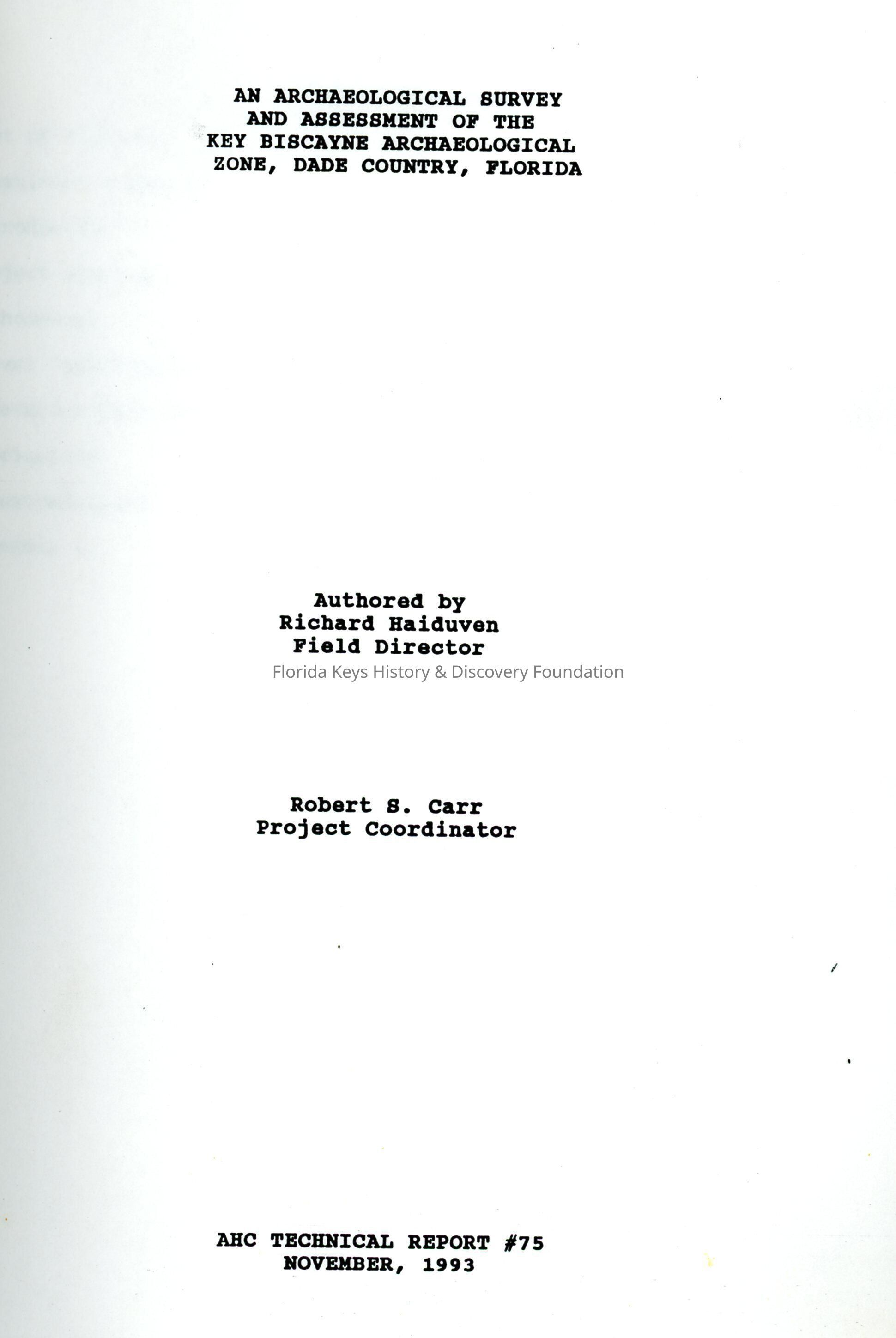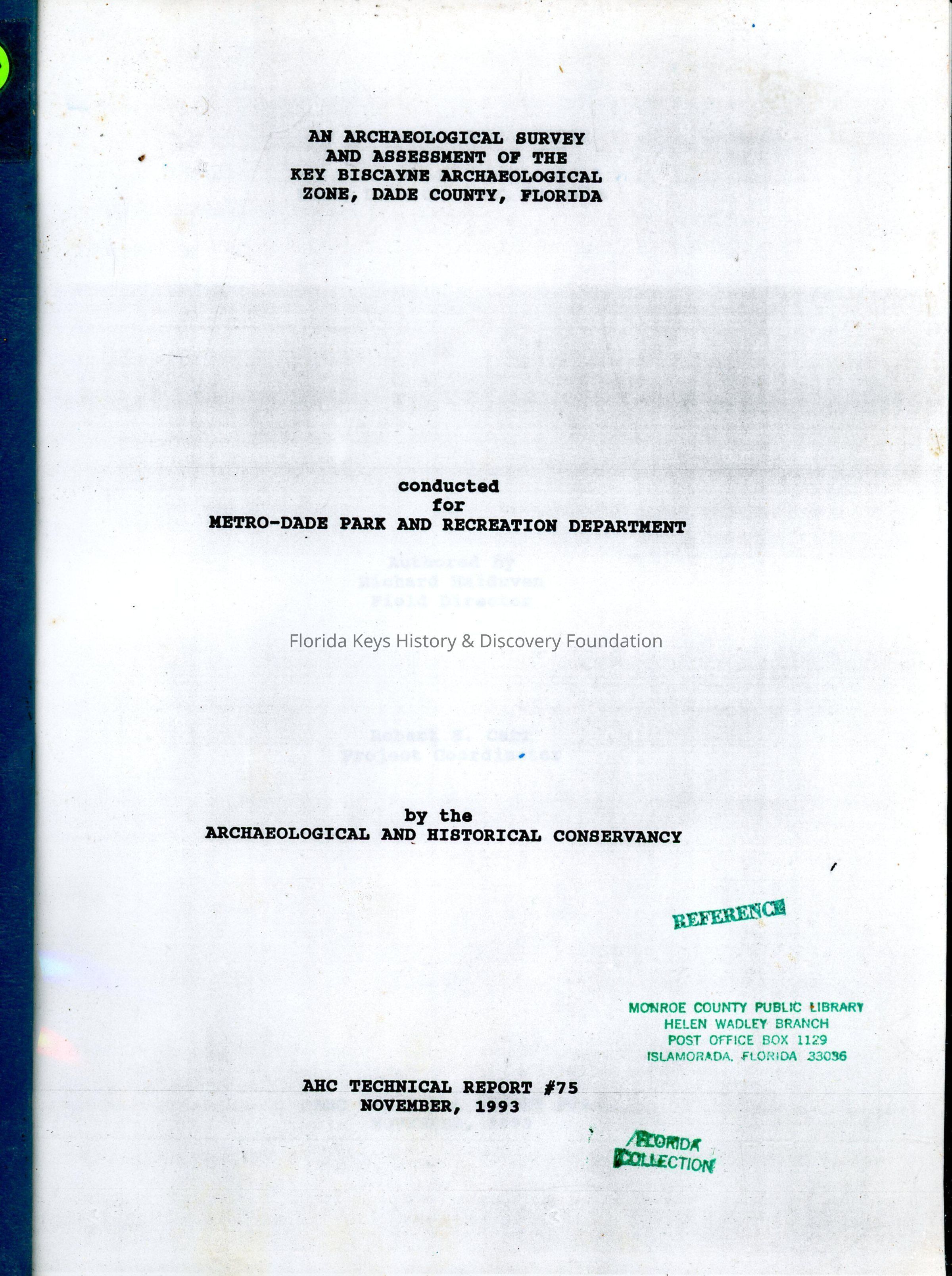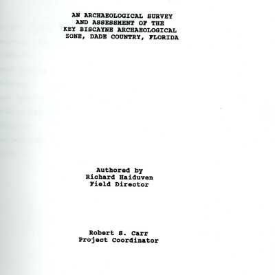 An Archaeological Survey and Assessment of the Key Biscayne Archaeological Zone, Dade County, FloridaEntry/Object ID