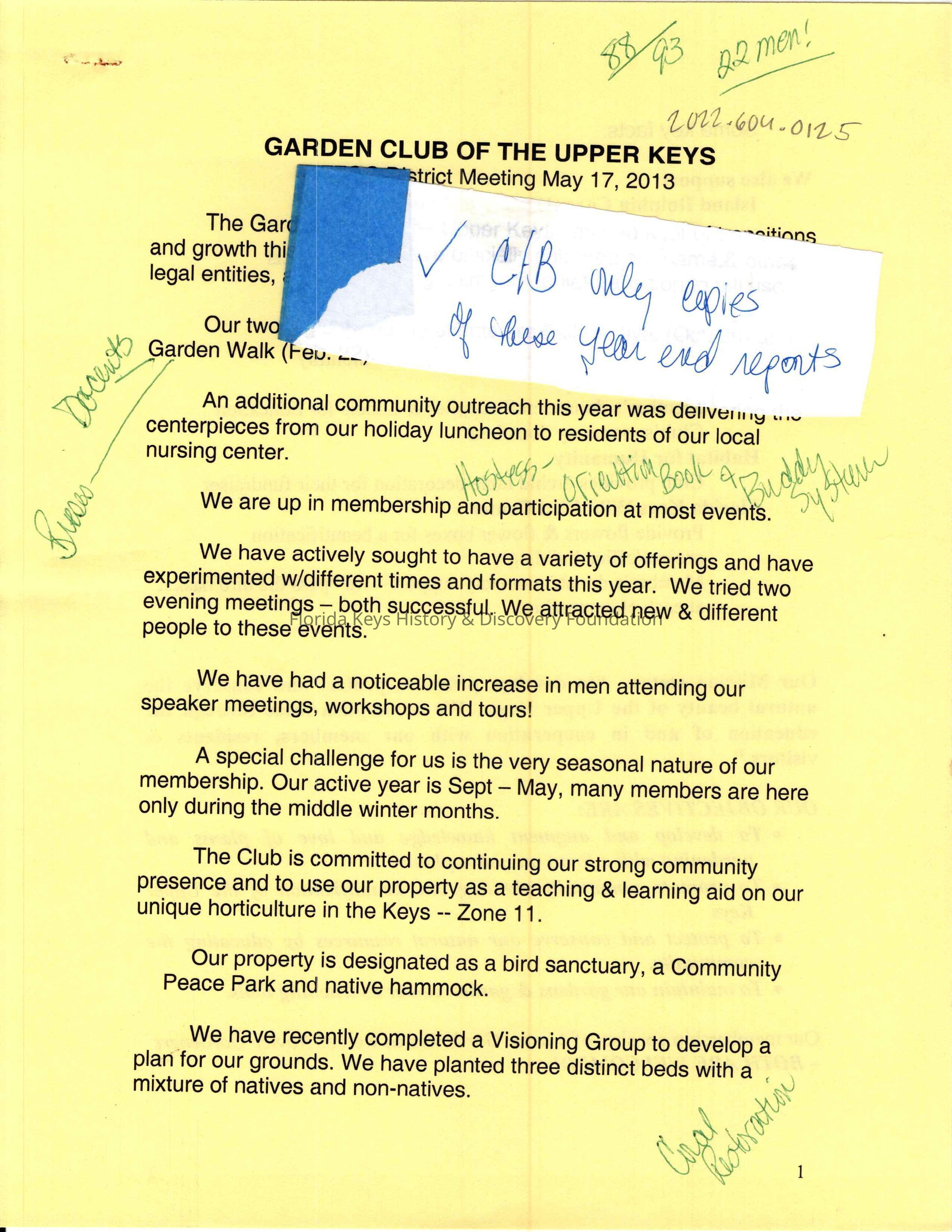 2010s, 2013, Meeting Minutes, GCUK, Florida Federation of Garden ClubsDescription