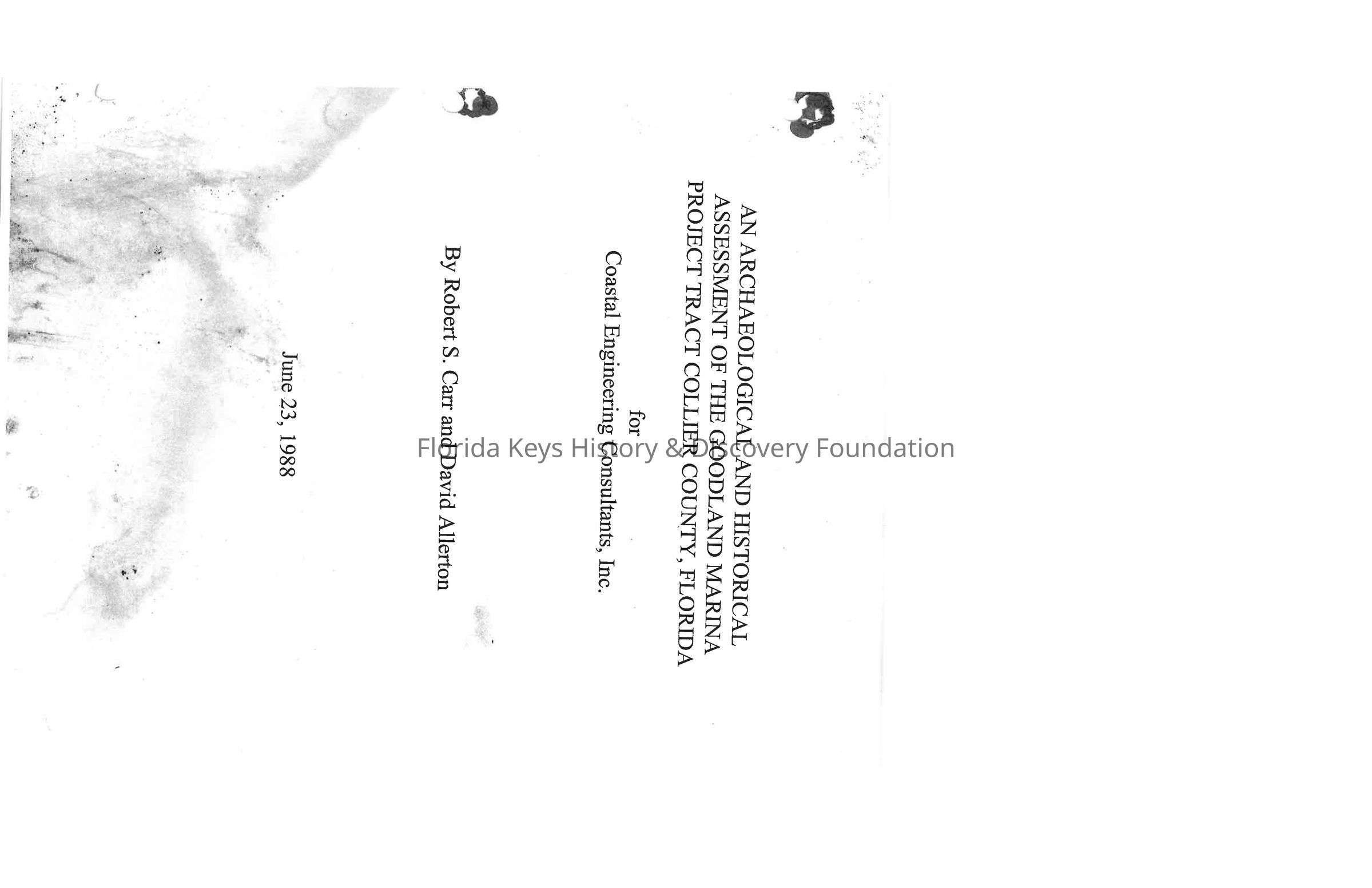 An Archaeological and Historical Assessment of the Goodland Marina Project Tract Collier County, FloridaEntry/Object ID