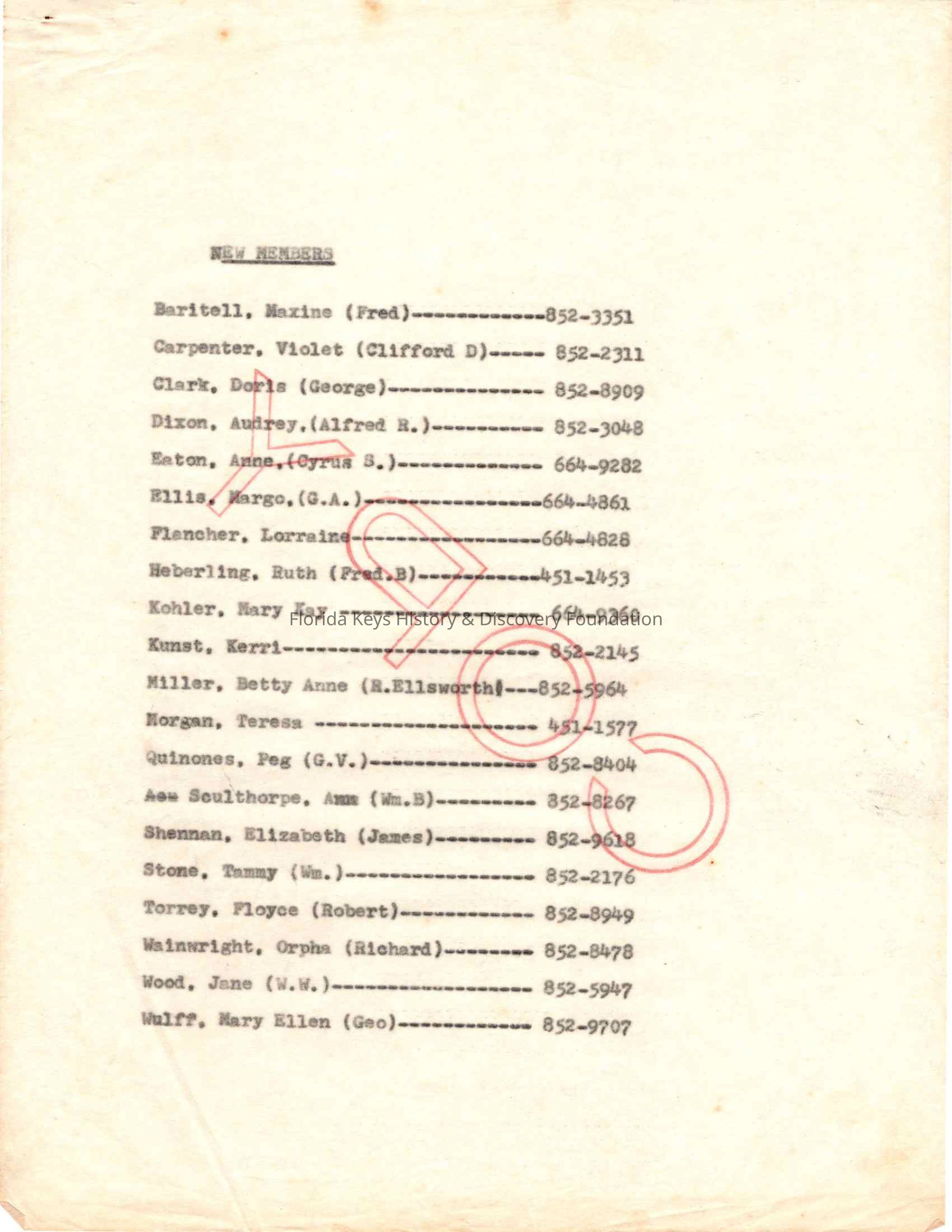 Garden Club of the Upper Keys, Maxine Baritell, Violet Carpenter, Fred Baritell, Clifford D Carpenter, Doris Clark, George Clark, Audrey Dixon, Anne Eaton, Cyrus S. Eaton, Margo Ellis, G. A. "Jerry" Ellis, Lorraine Flancher, Ruth Heberling, Fred B Heberling, Mary Kay Kohler, Kerri Kunst, Betty Anne Miller, R. Ellsworth Miller, Teresa Morgan, Peg Quinones, G.V. Quinones, Ann Sculthorpe, Wm.B. Sculthorpe, Floyce Torrey, Robert Torrey, Elizabeth Shennan, James Shennan, Tammy Stone, Wm. Stone, Orpha Wainwright, Richard Wainwright, Jane Wood, Mary Ellen Wulff, George Wulff