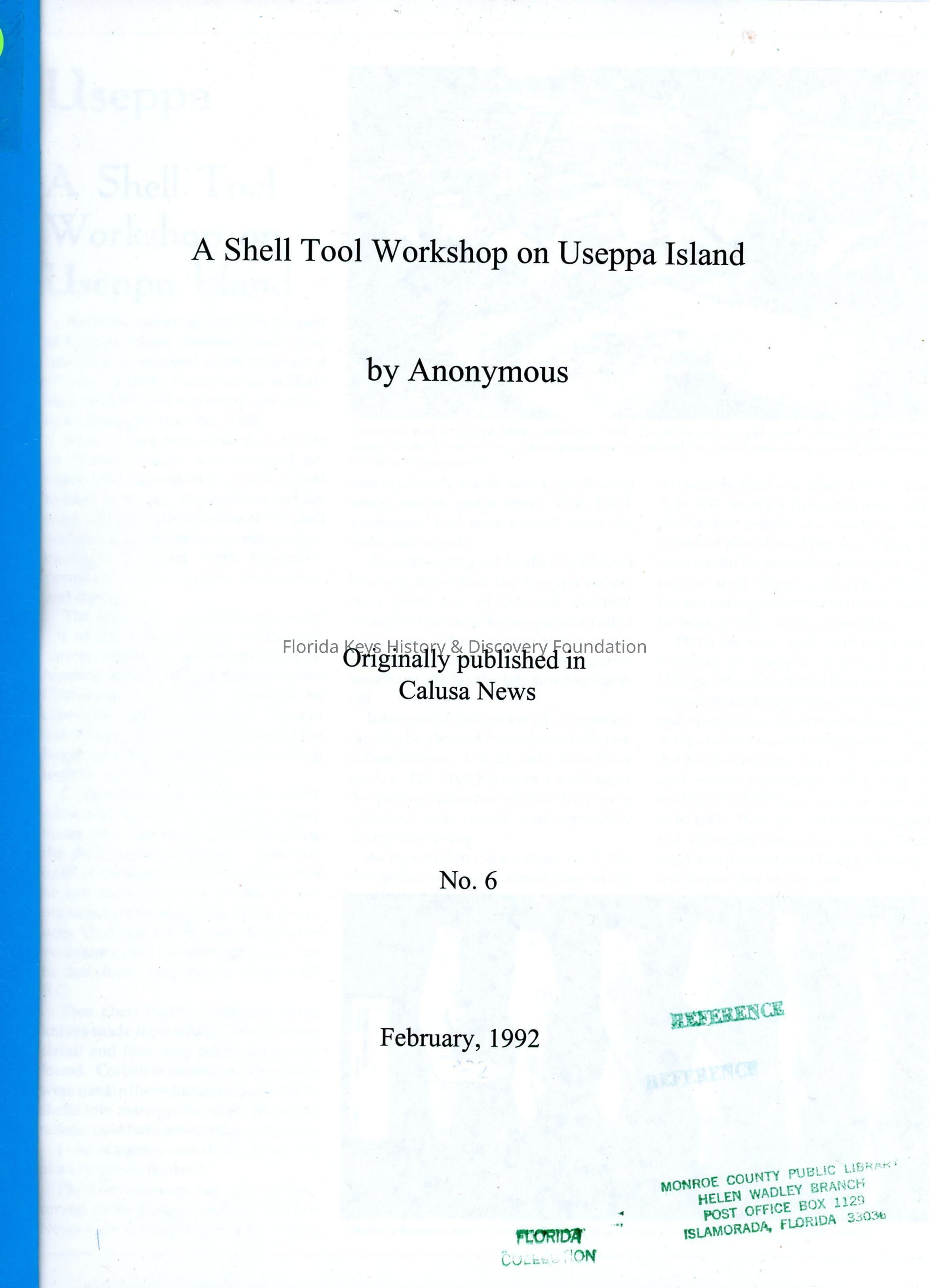 A Shell Tool Workshop on Useppa IslandEntry/Object ID