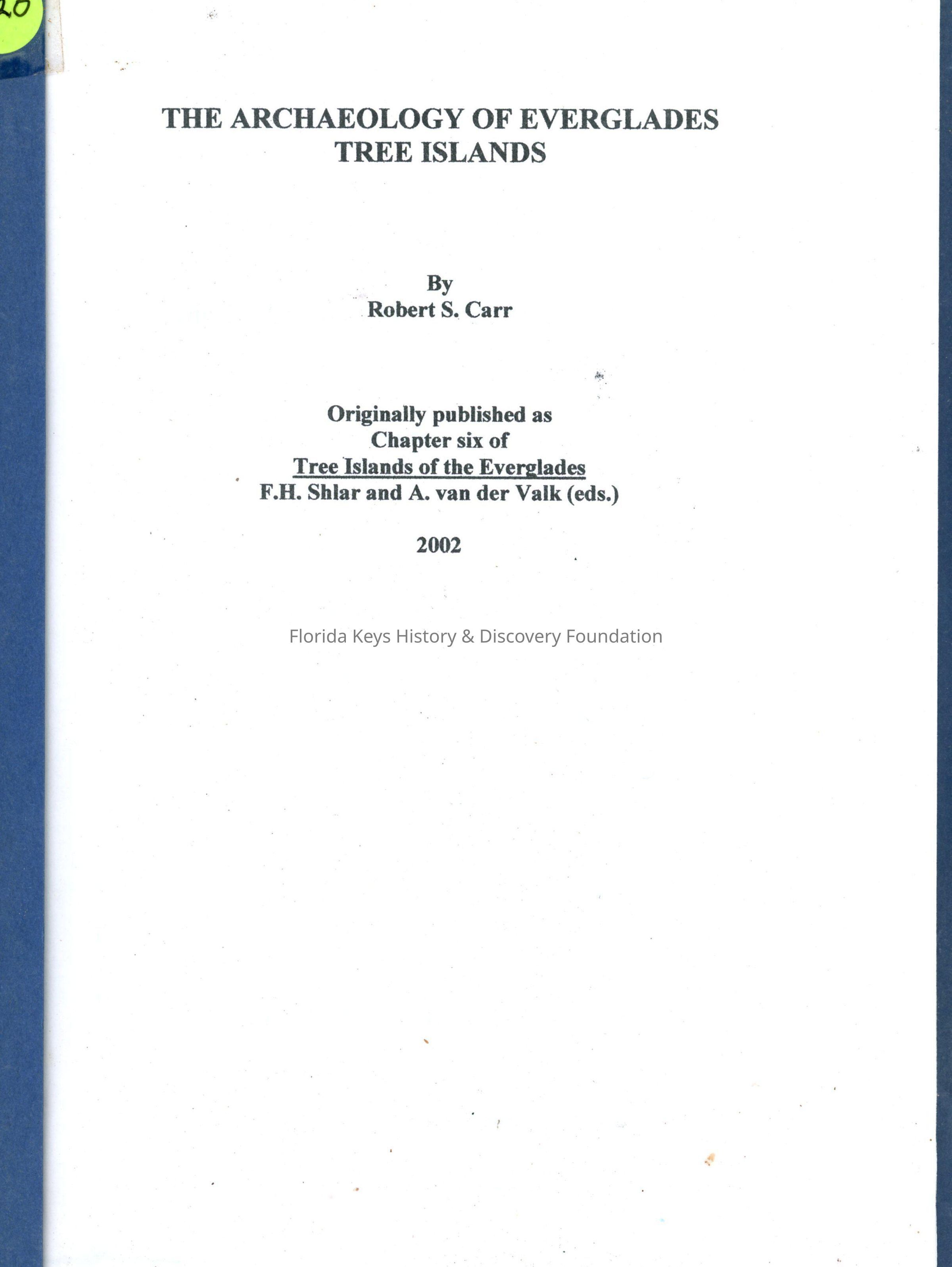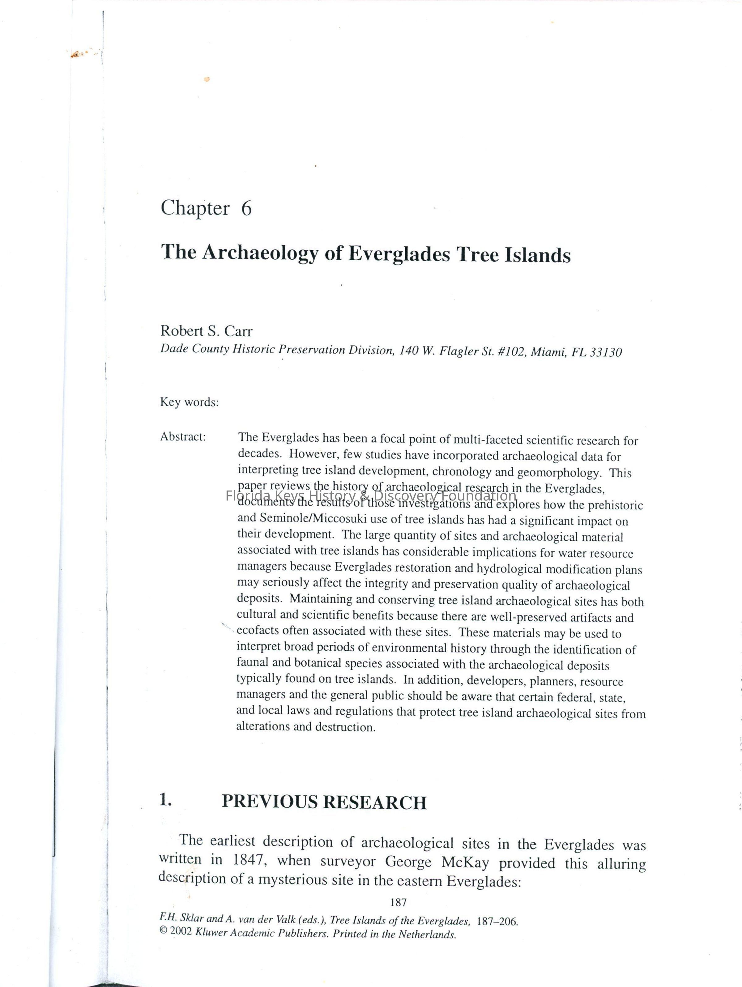 Robert S. Carr, Archaeological Sites, EvergladesSecondary Title
