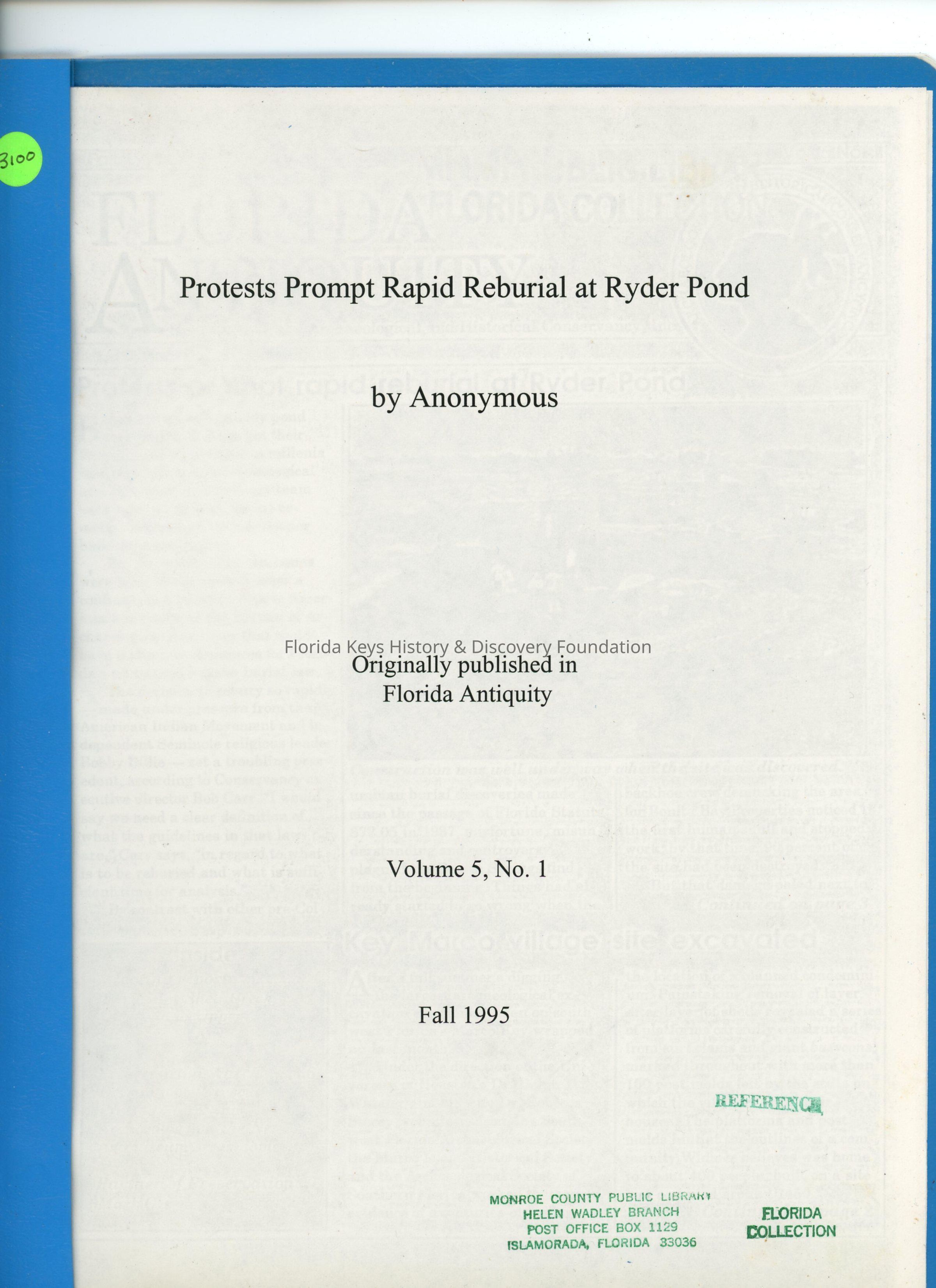 Protests Prompt Rapid Reburial at Ryder PondEntry/Object ID