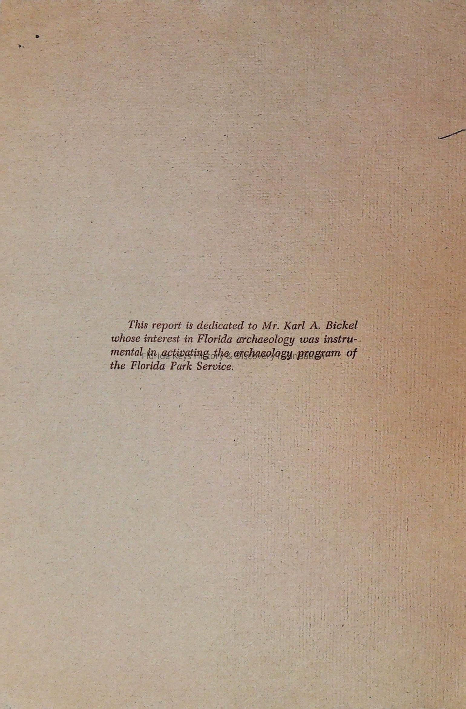 "This report is dedicated to Mr. Karl A. Bickel whose interest in Florida archaeology was instrumental in activating the archaeology program of the Florida Park Service"Person or Organization