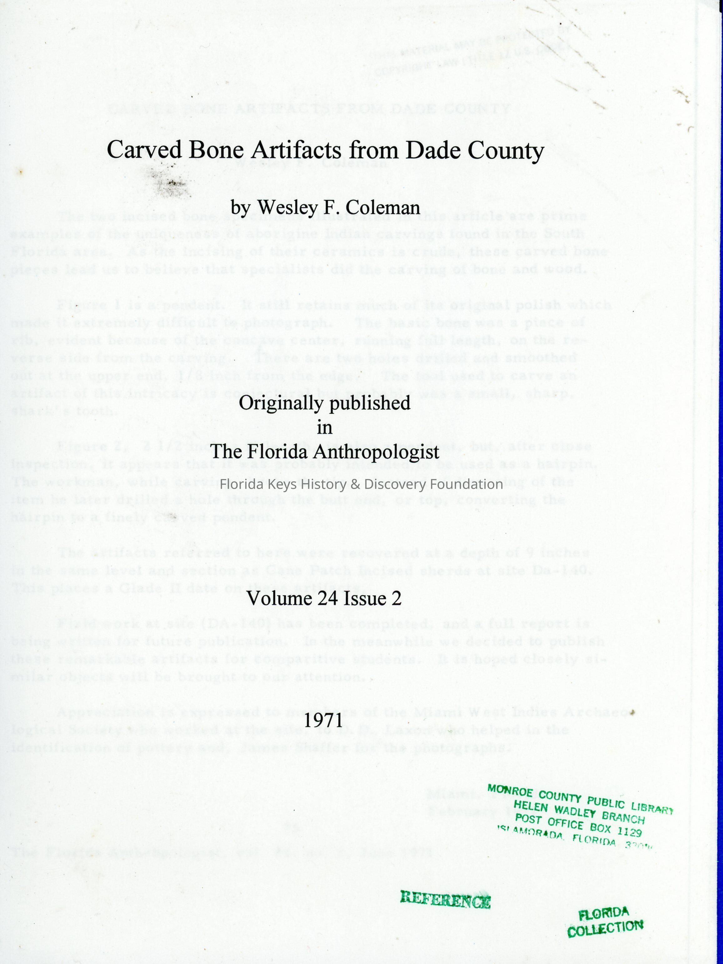 Carved Bone Artifacts from Dade CountyEntry/Object ID
