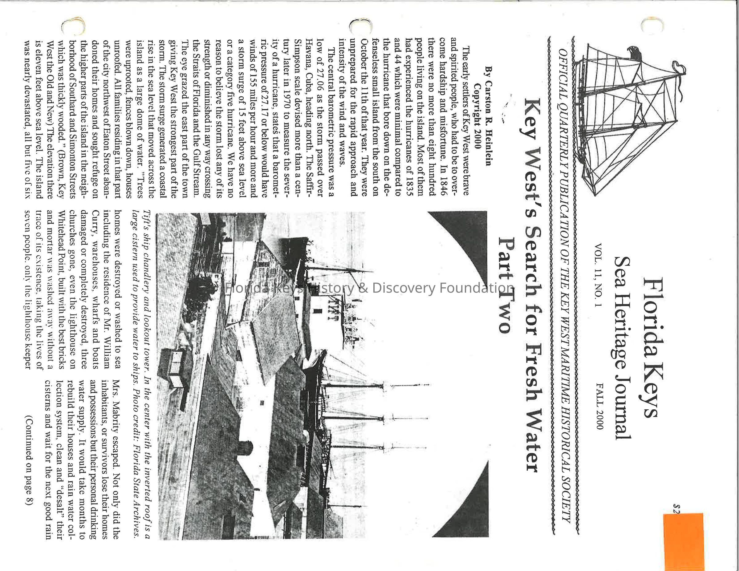 Florida Keys Sea Heritage Journal, Volume 11, Number 1, Fall 2000Description