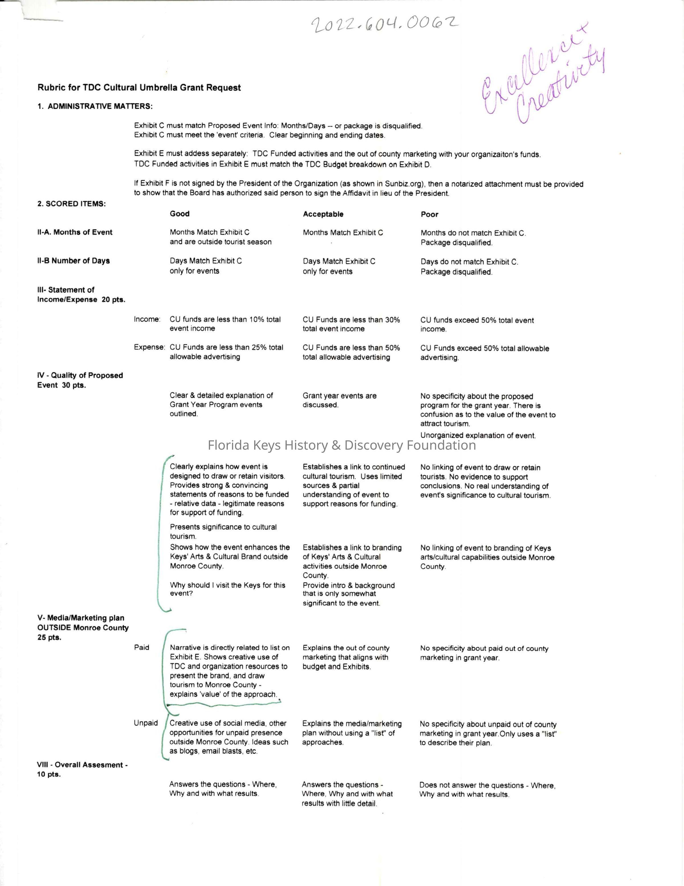Rubric for TDC Cultural Umbrella Grant RequestEntry/Object ID