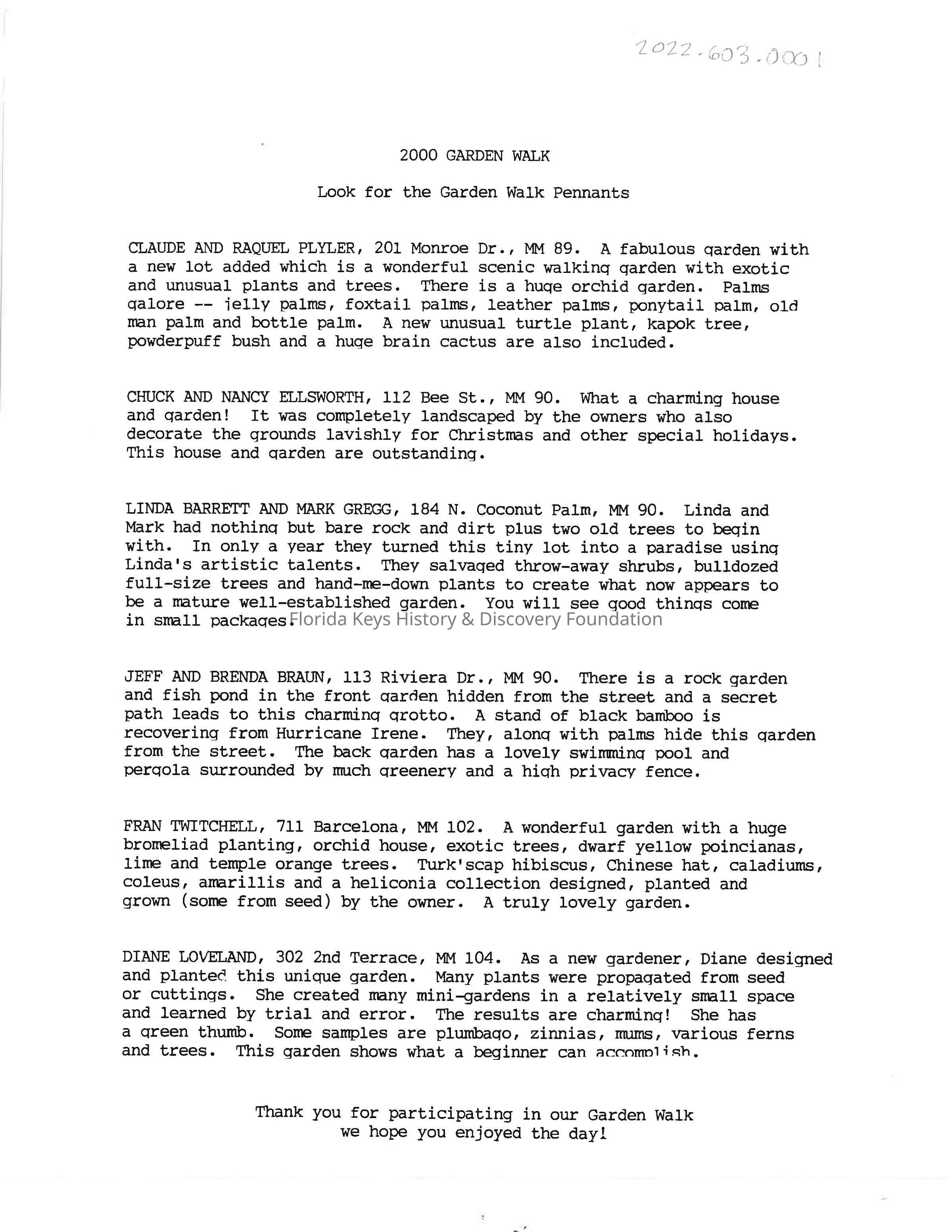 Garden Club of the Upper Keys, June Stoiber, Pat Cullin, Gay Sacharoff, Jo Luttrell, Thelma Eichman, Lynn Shullaw, Irma RichardsonCreated By
