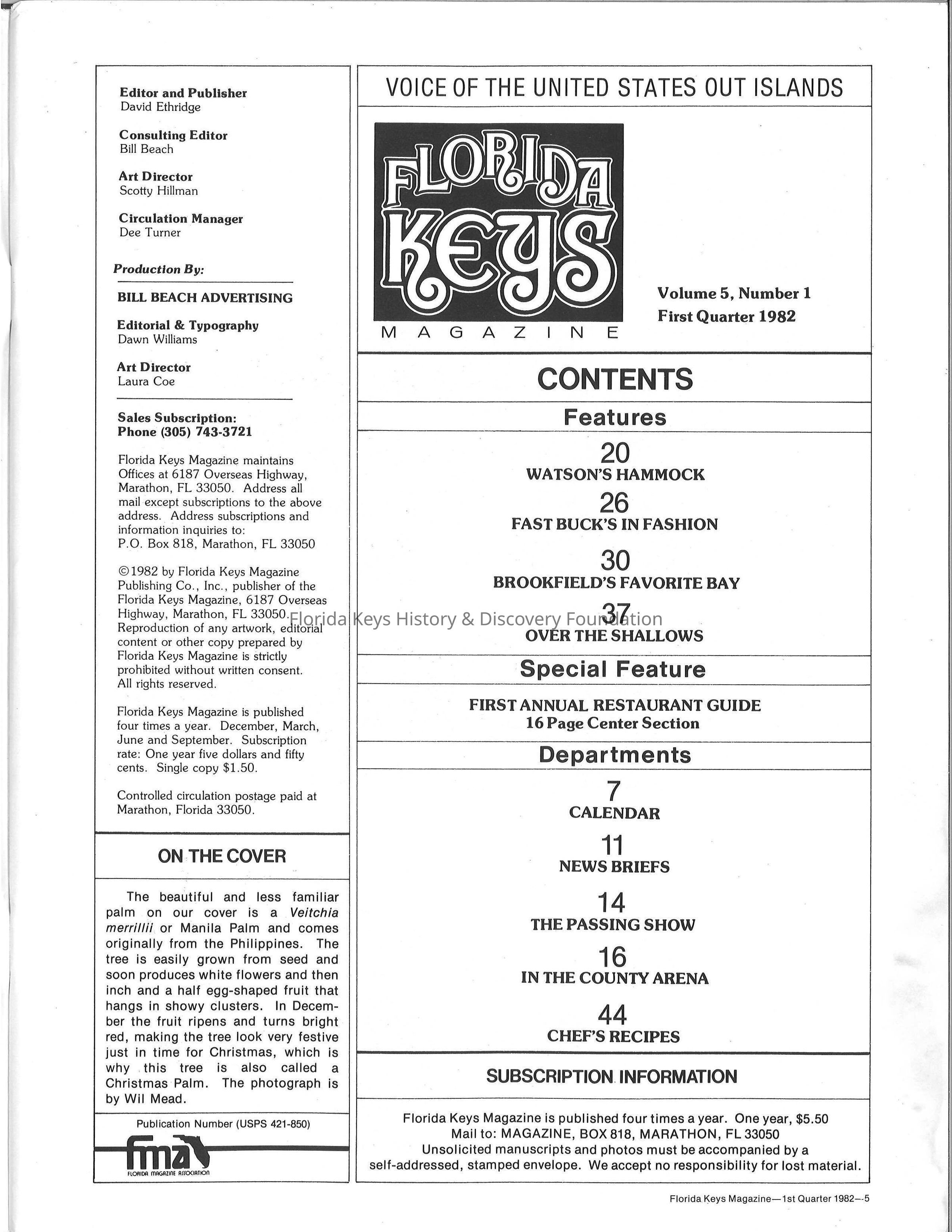 Florida Keys Magazine, First Quarter, 1982Entry/Object ID