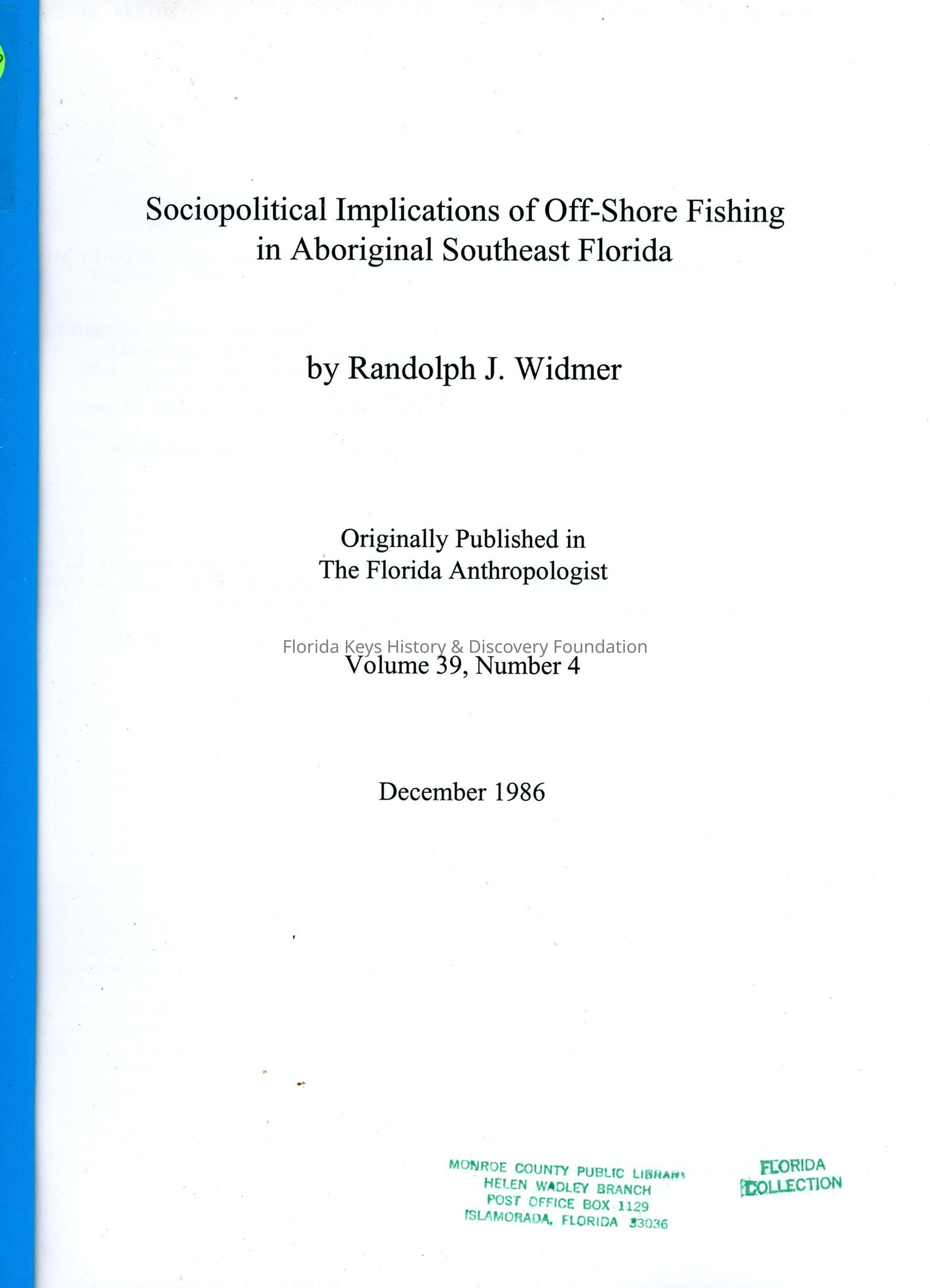 Sociopolitical Implications of Off-Shore Fishing in Aboriginal Southeast FloridaEntry/Object ID
