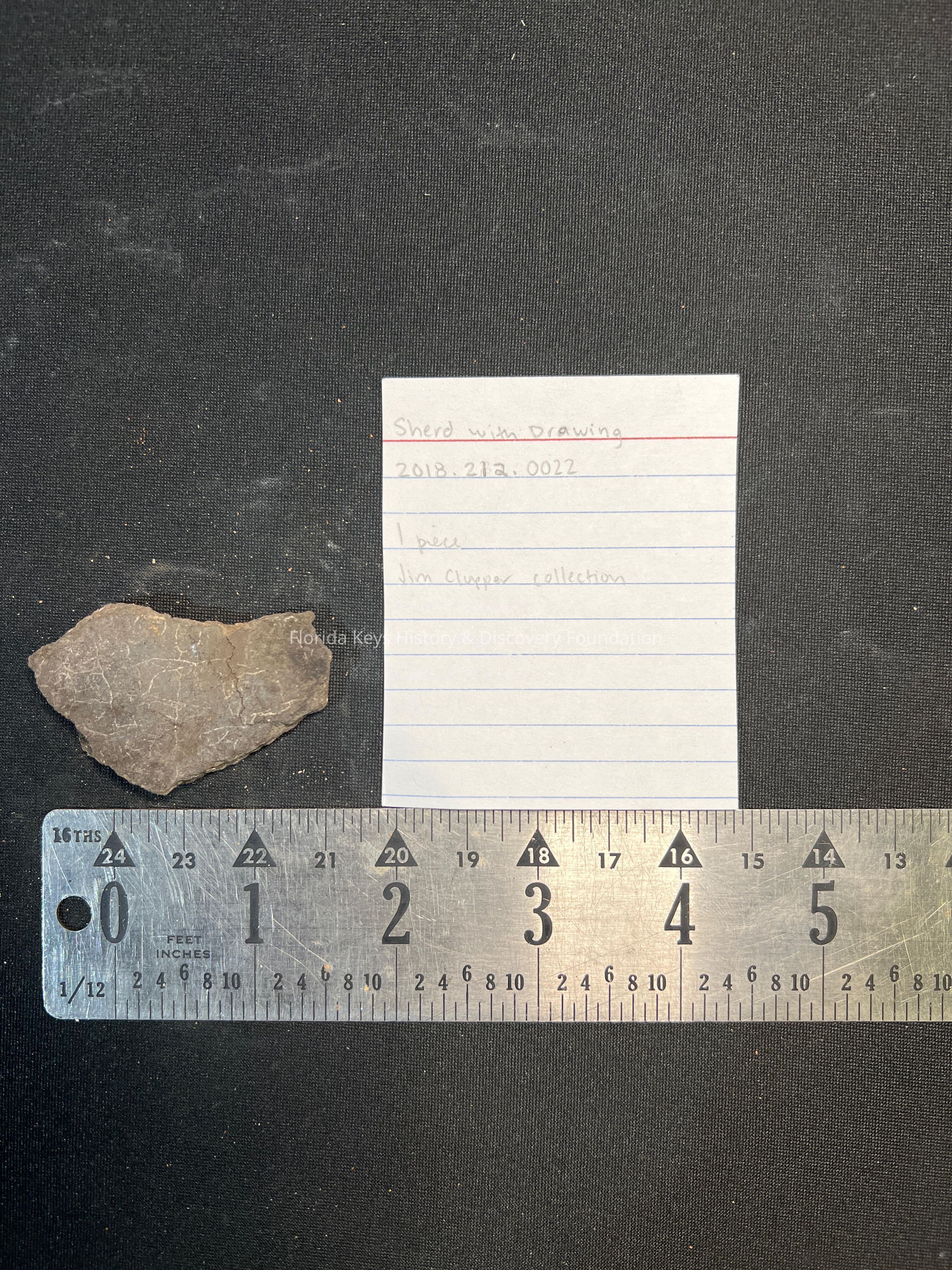 Sherd with what seems to be a drawing of a stick figure womanContext