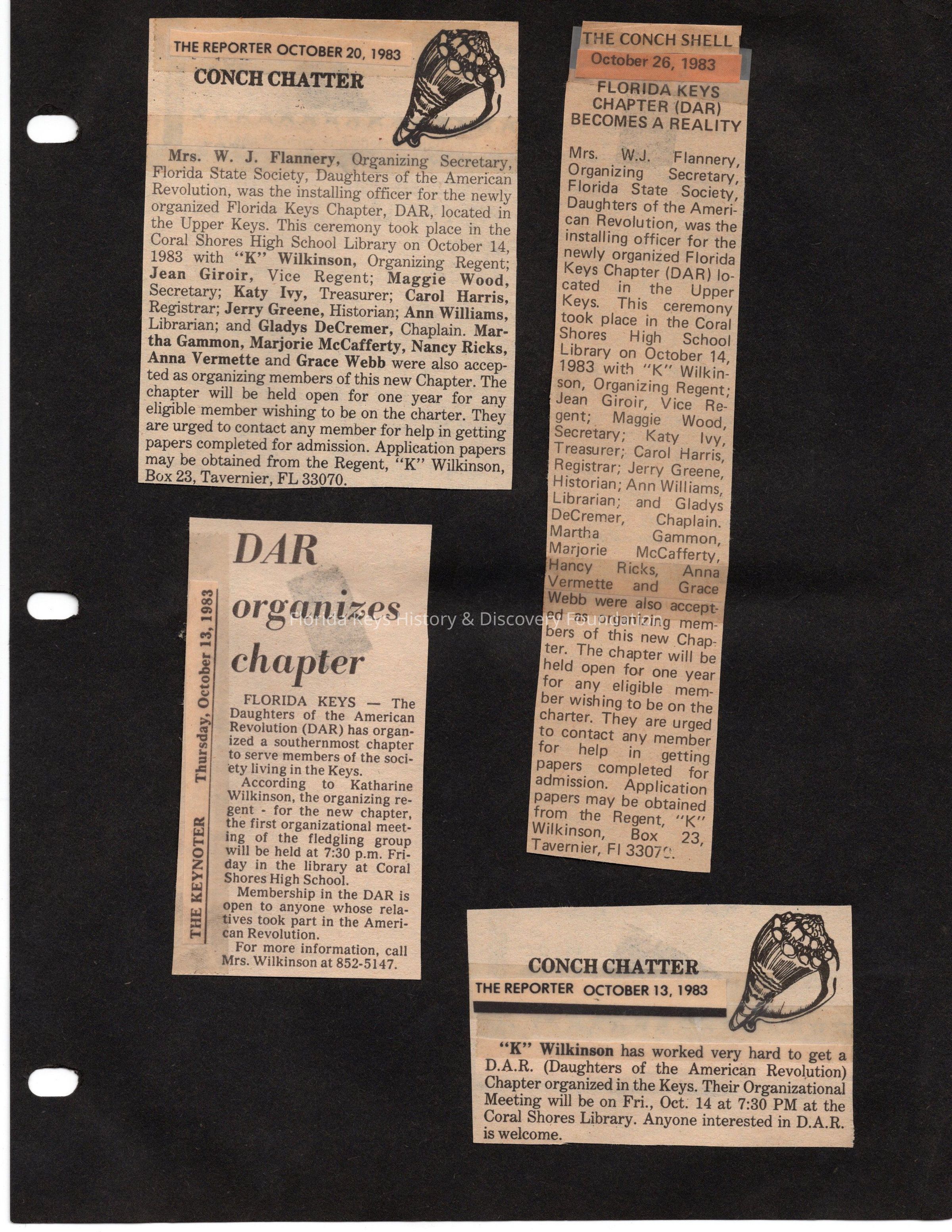Newspaper, NSDAR, Tavernier, 1983, 1980s, DARScope and Content