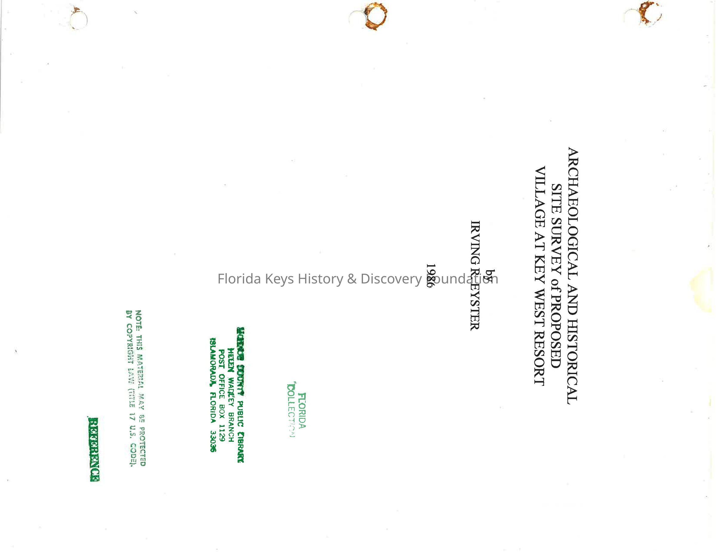 Archaeological and Historical Site Survey of Proposed Village at Key West Resort by Irving R. EysterEntry/Object ID