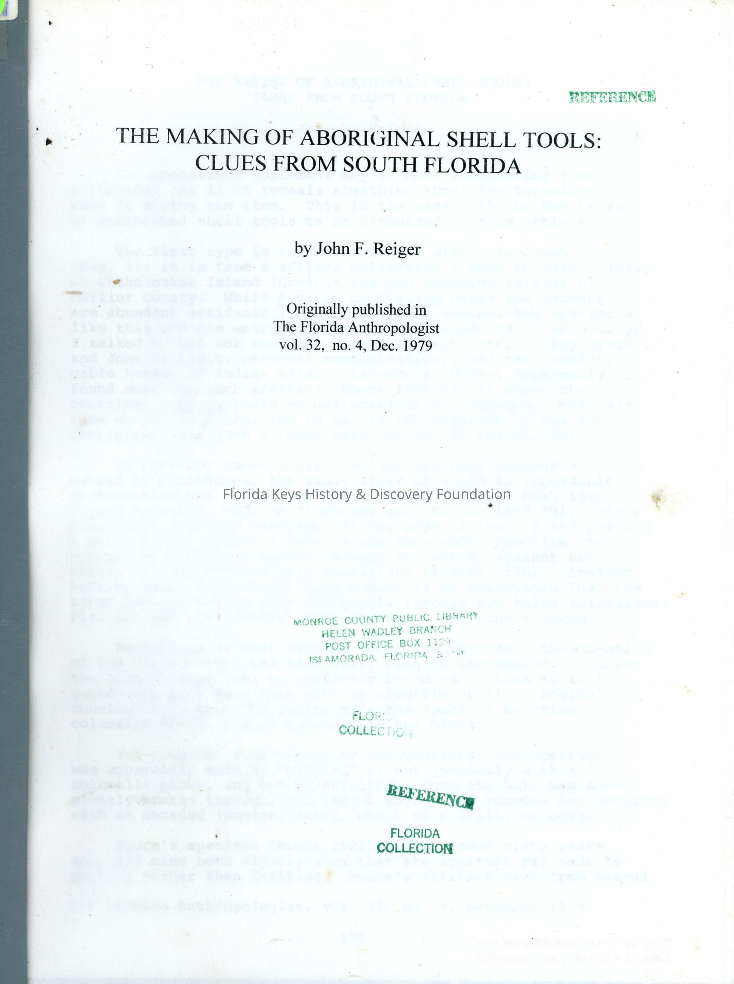 The Making of Aboriginal Shell Tools: Clues From South FloridaEntry/Object ID