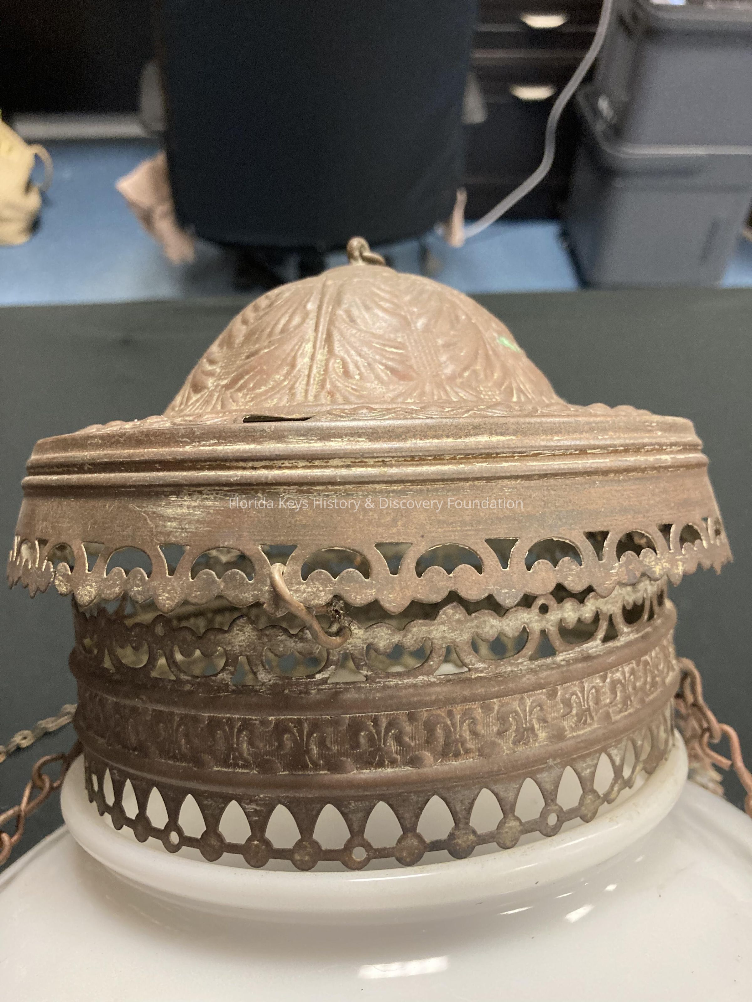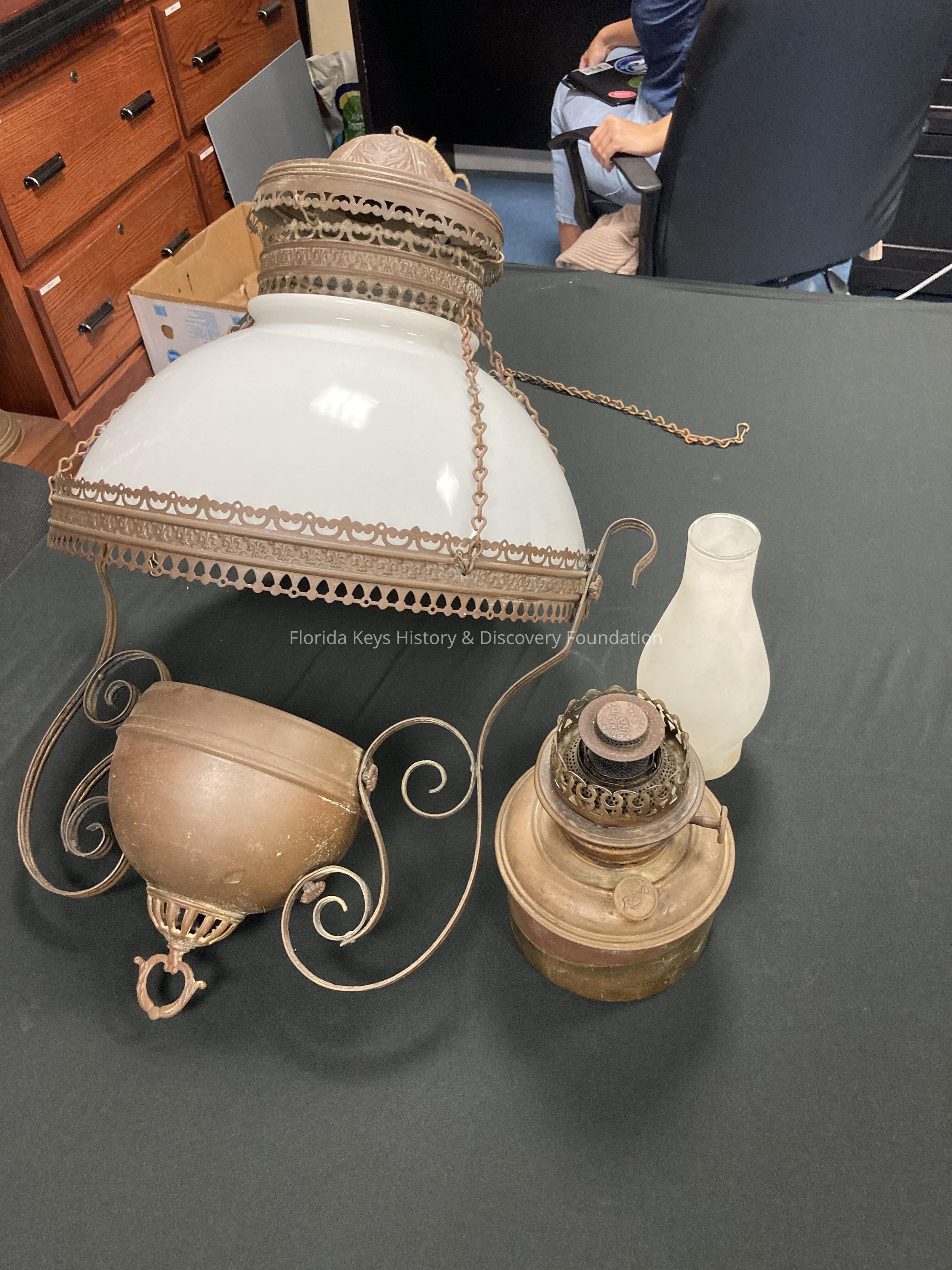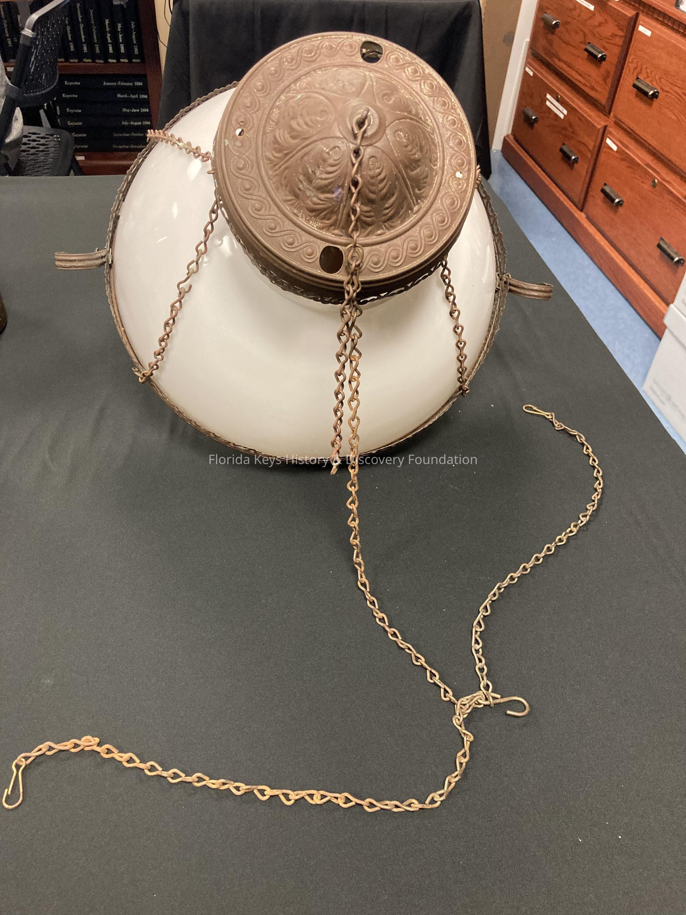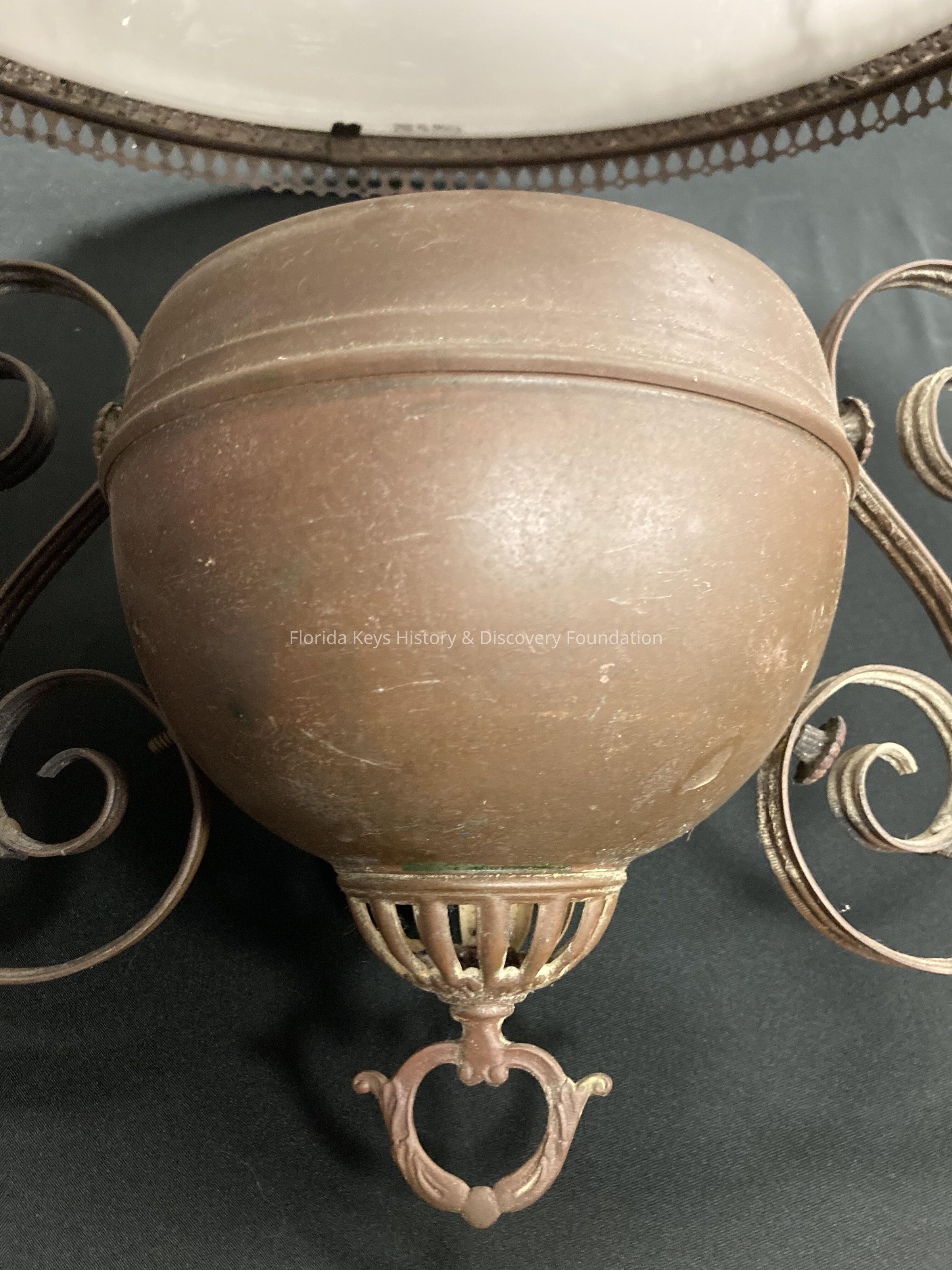 According to the donor, this lighting fixture was used by Sir Lancelot Jones and his family. Sir Lancelot Jones (born October 1898 died December 22, 1997) was a local African American man, whose father, Israel Jones, purchased several small keys and started what would become the largest Key lime and pineapple plantations in the area. After damage due to storms and rising competition from abroad caused the Jones family to give up growing limes and pineapples they decided to take up being fishing guides and leading people to bonefish. Sir Lancelot took many notable people in history on guides including several Presidents of the United States. Jones was an avid conservationist and his story of hard work and overcoming adversity is inspiring to many people resulting in the state of Florida creating a state park around his home, which celebrated "Sir Lancelot Garfield Jones Day" on October 13, 2014 and advocate for making it a permeant event.Collection