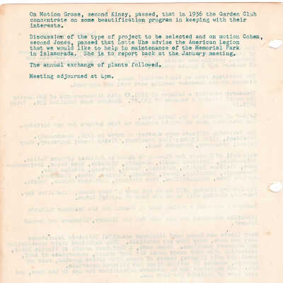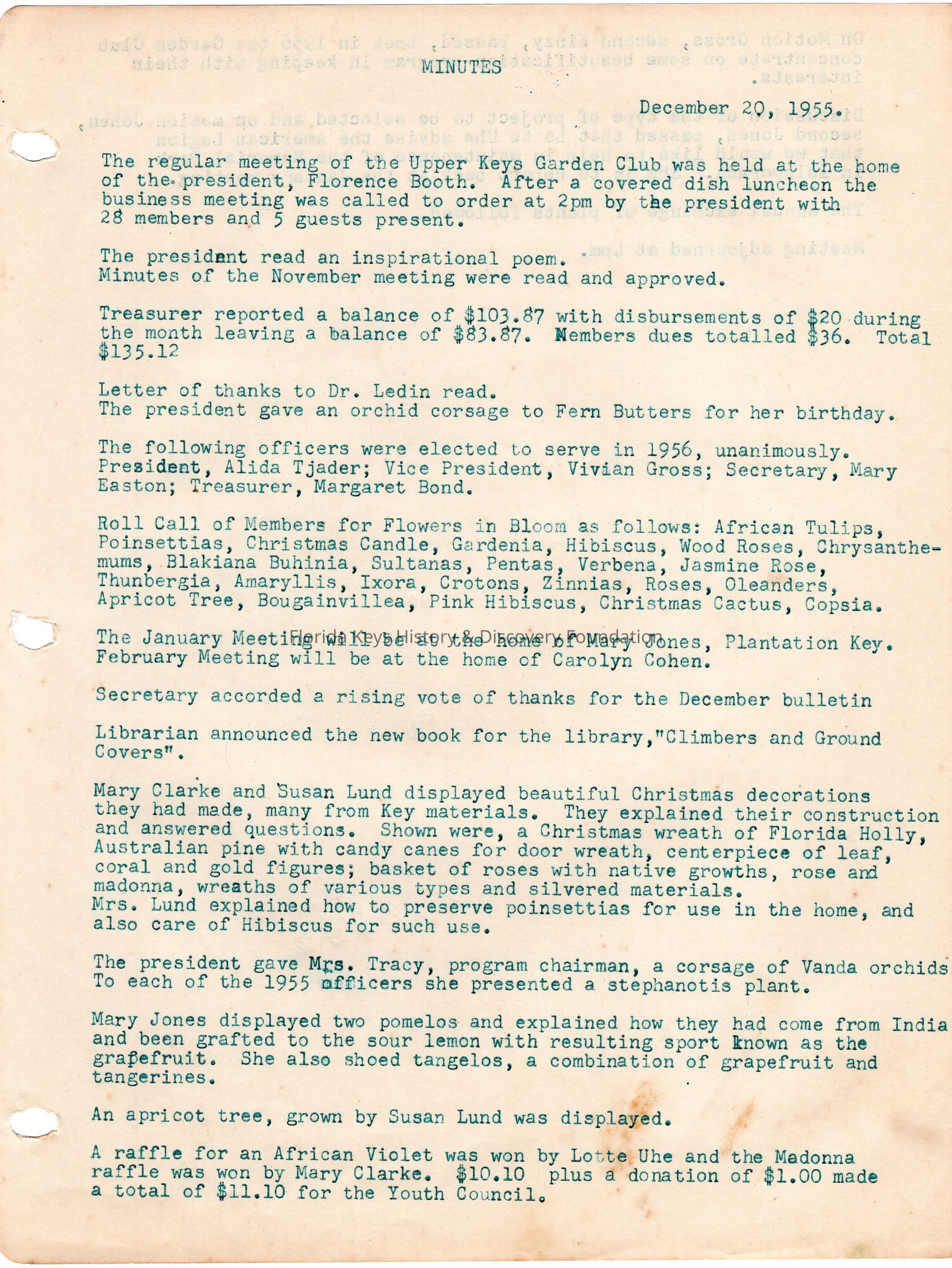 Minutes from club meeting held on December 20th, 1955 at the home of Mrs. Florence Booth.Collection