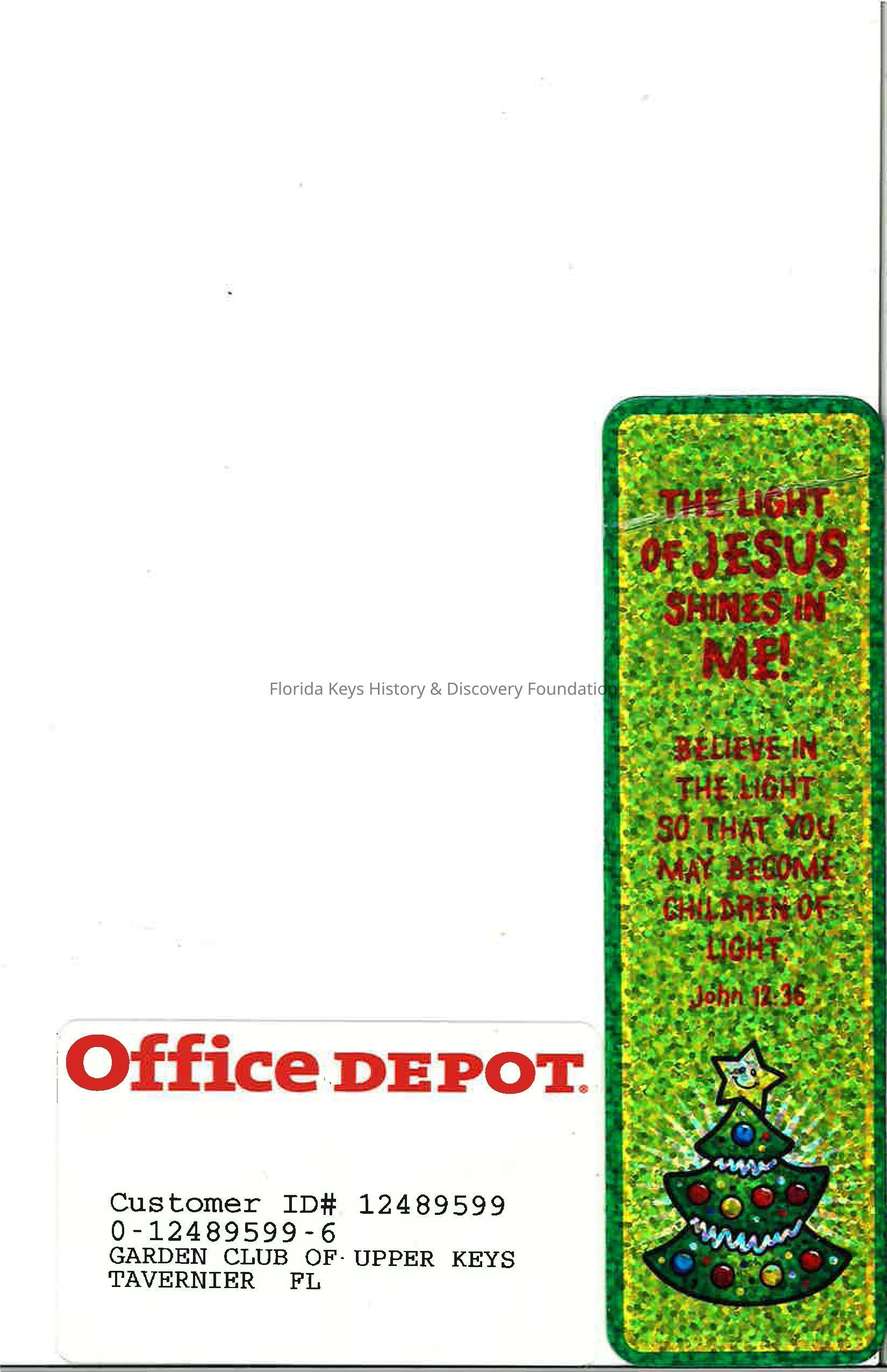 A Bookmark that sys "The Light of Jesus Shines in Me! Believe the Light so that you may become Children of Light. John 12:36" with a Christmas tree on the bottom.