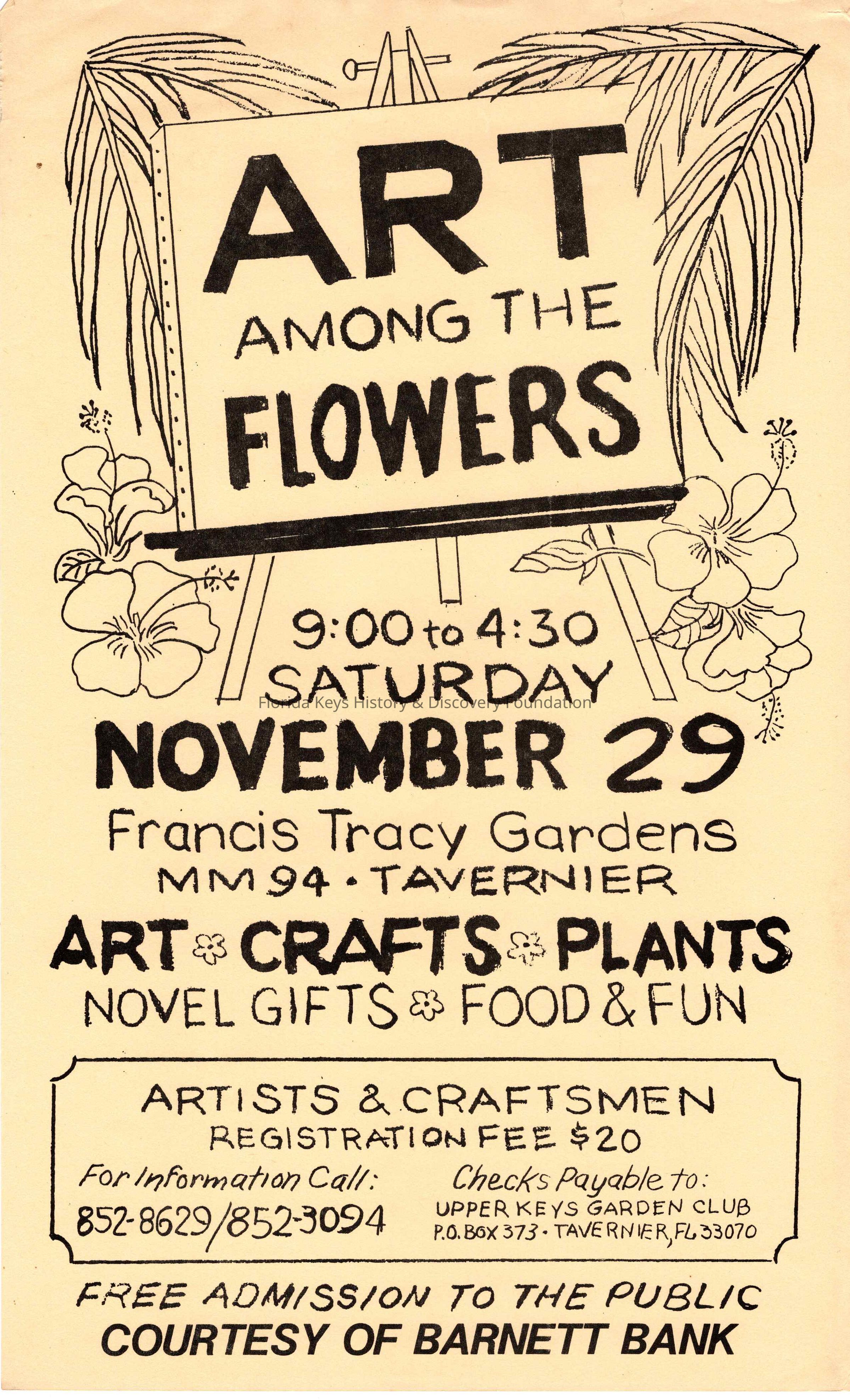 1980s, 1986, Tavernier, Francis Tracy Garden Center, Art Among Flowers, Art Show, Arts and Crafts, DonationContext