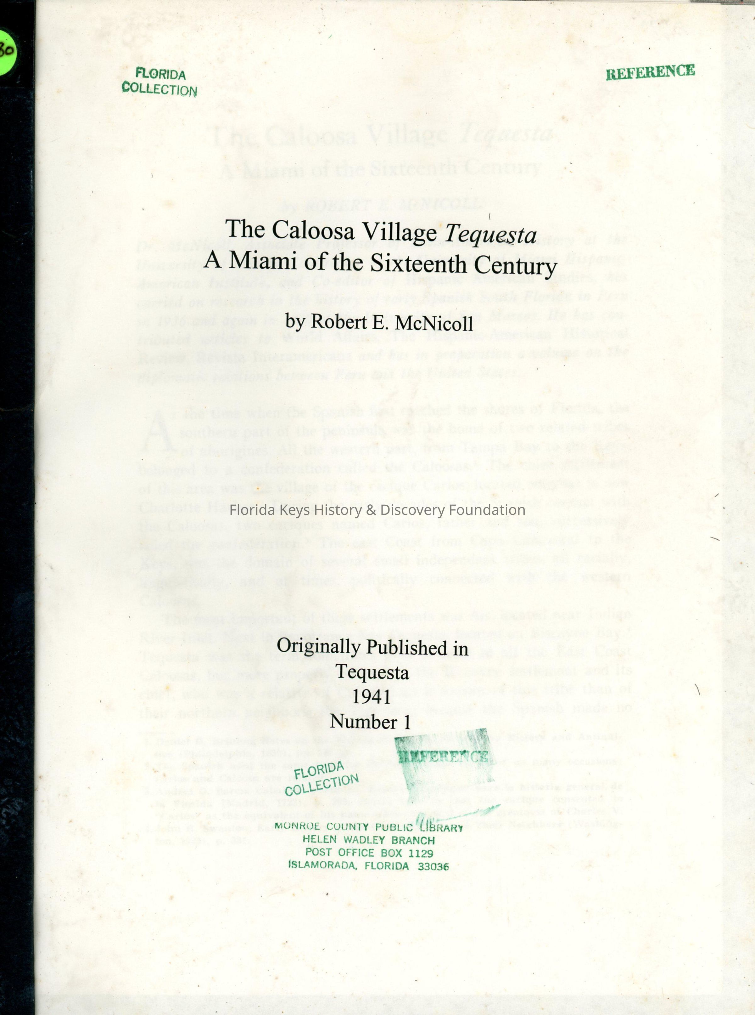 The Caloosa Village Tequesta: A Miami of the Sixteenth CenturyEntry/Object ID