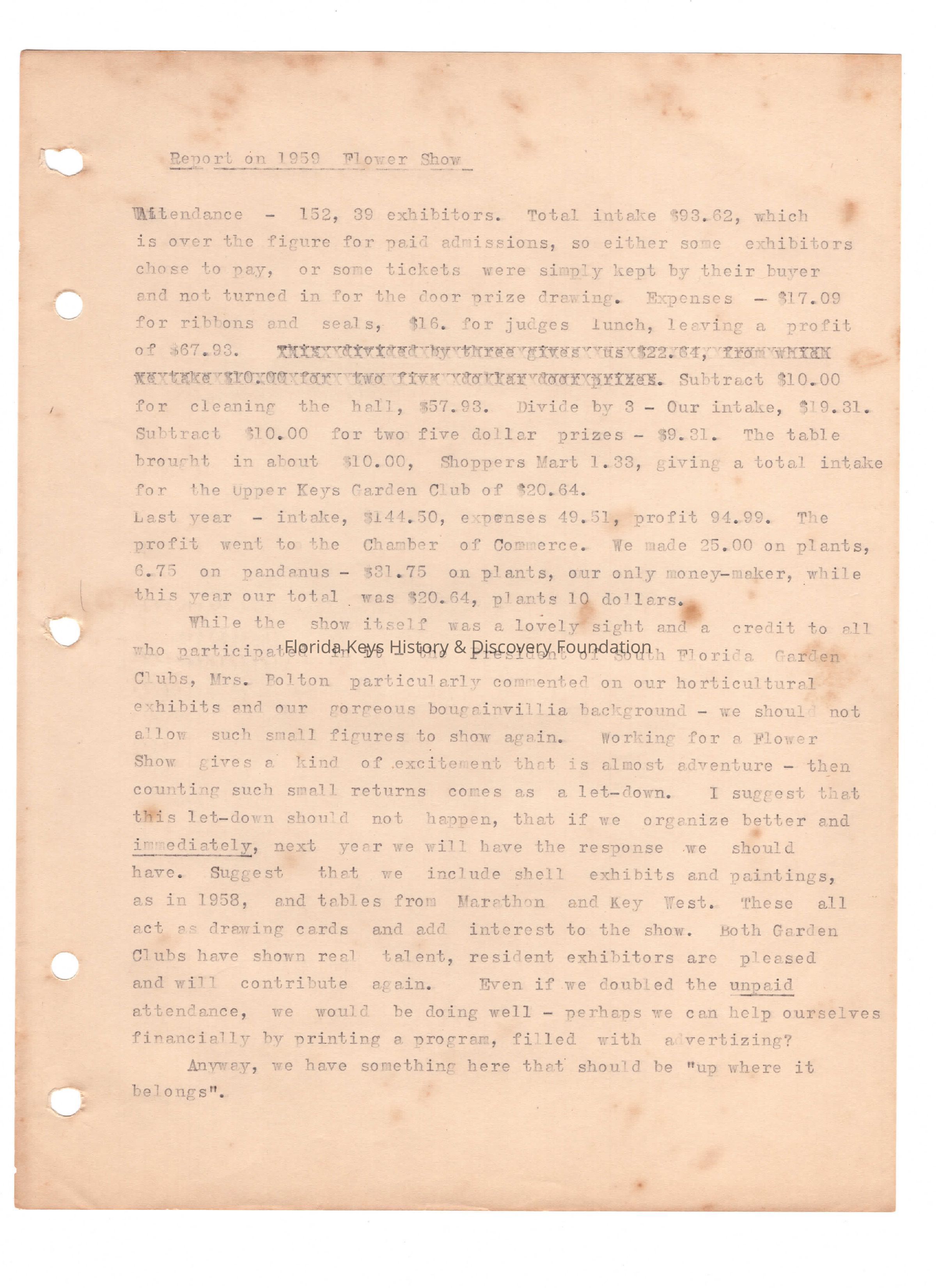 Meeting Minutes - Report on 1959 Flower ShowEntry/Object ID