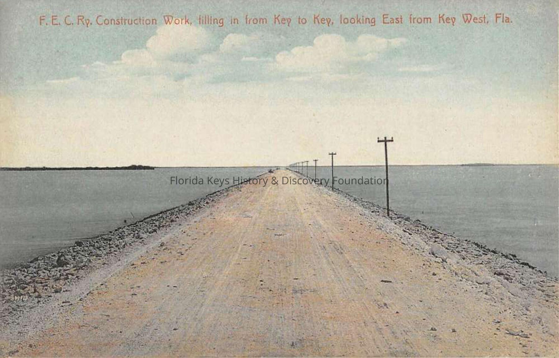 Captioned "F.E.C. Rr. Construction Work, Filling in from Key to Key, looking East from Key West, Fla."Collection