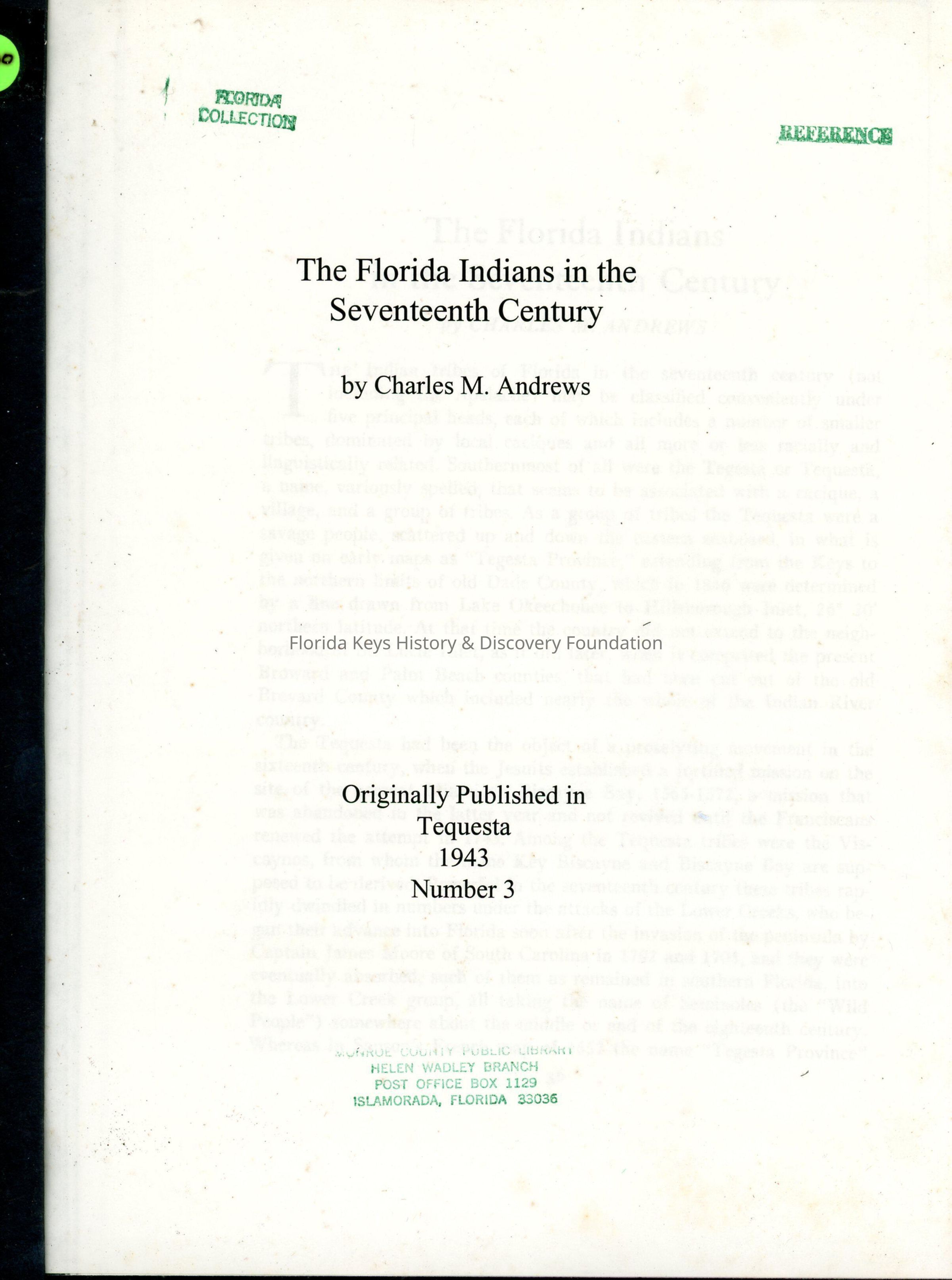 The Florida Indians in the Seventeenth CenturyEntry/Object ID