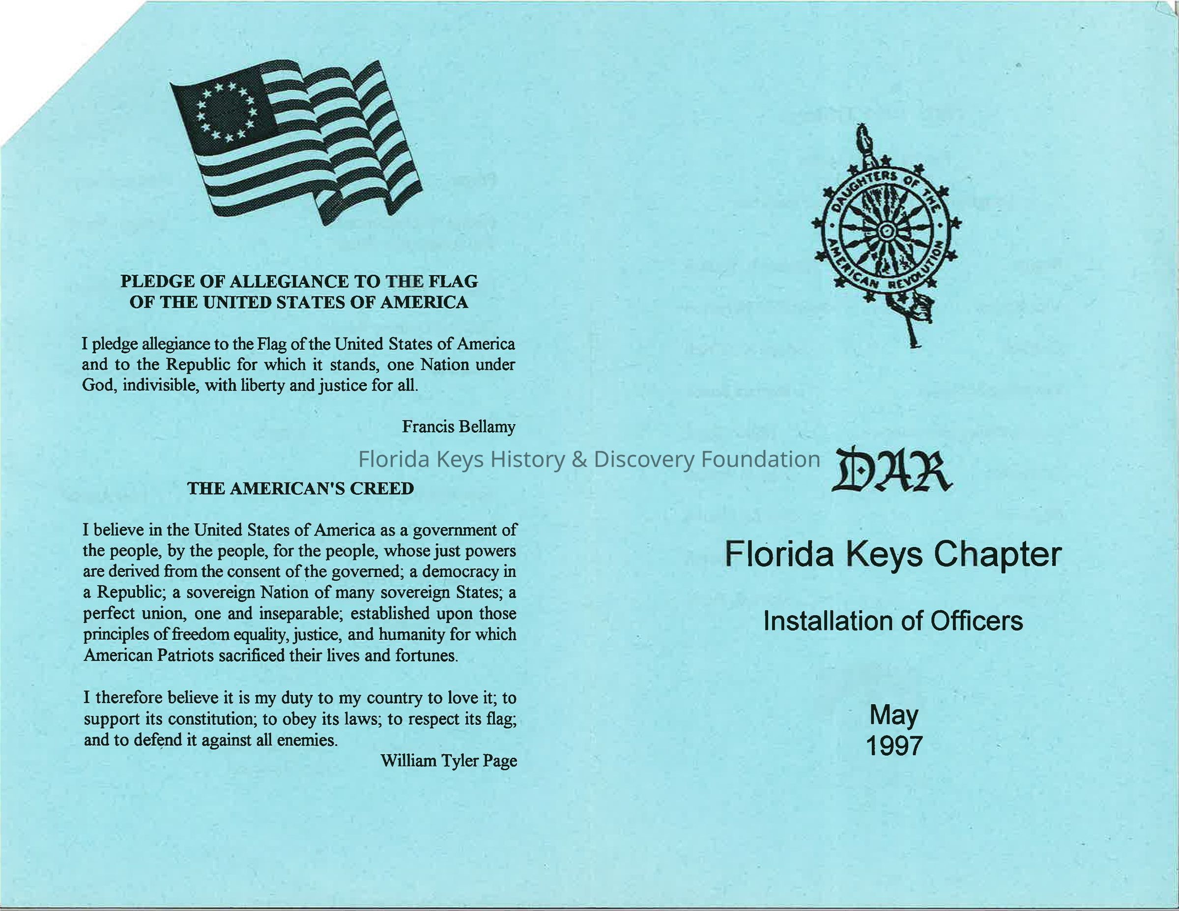 DAR Scrapbook of a select few items: a pamphlet, letter, two photosCollection
