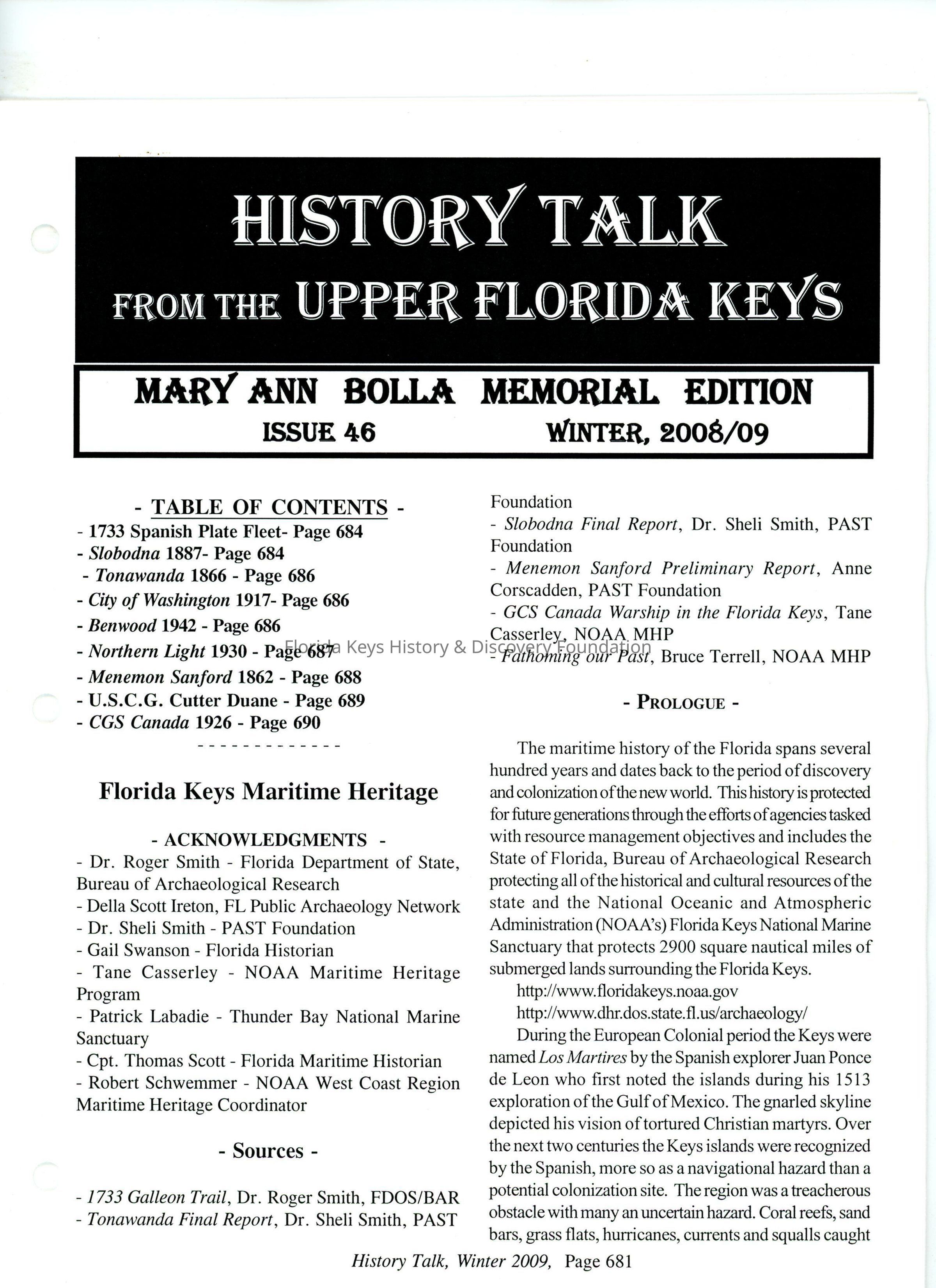 Local history journal of Upper Florida KeysCollection