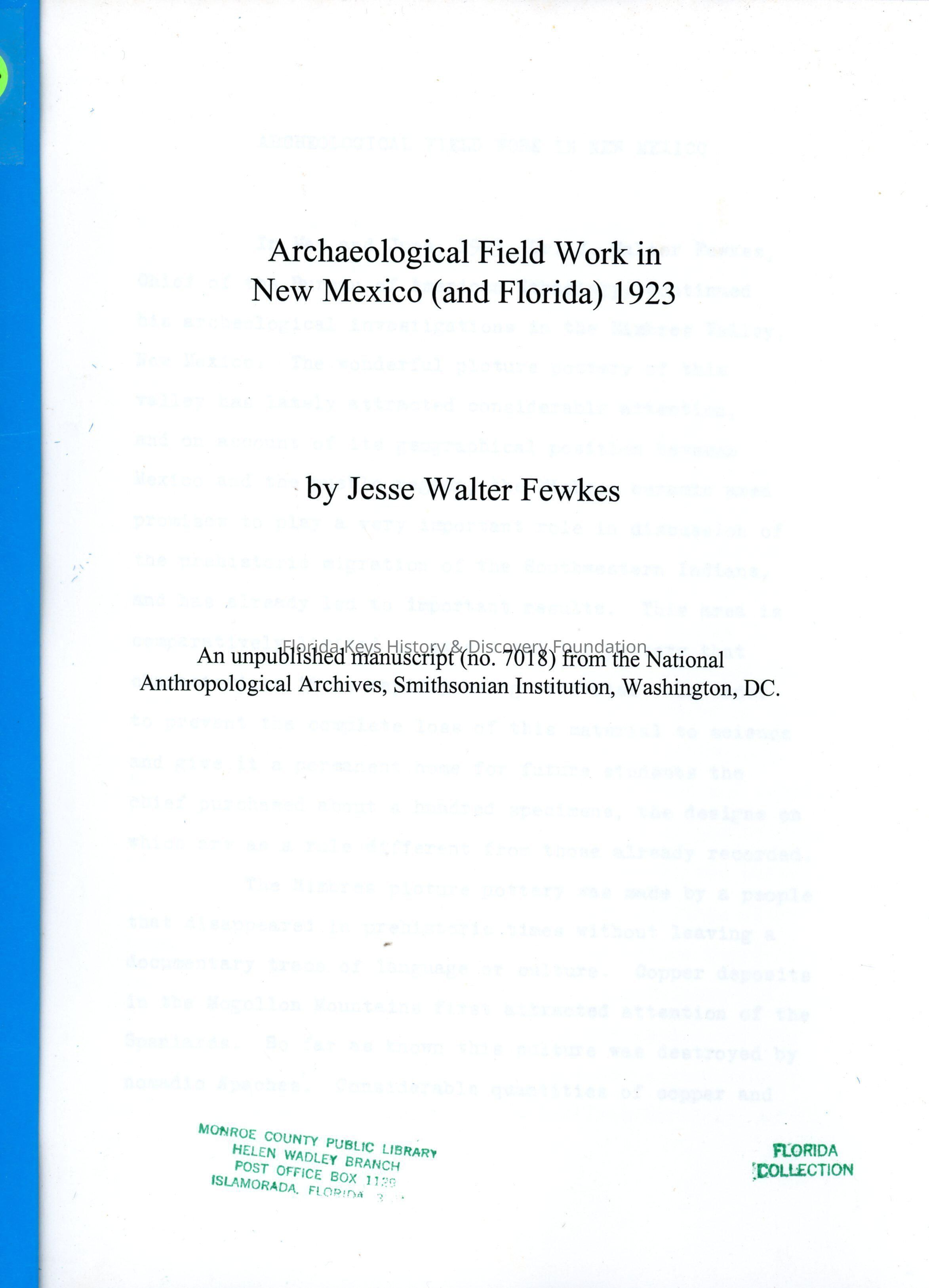 Archaeological Field Work in New Mexico (and Florida) 1923Entry/Object ID