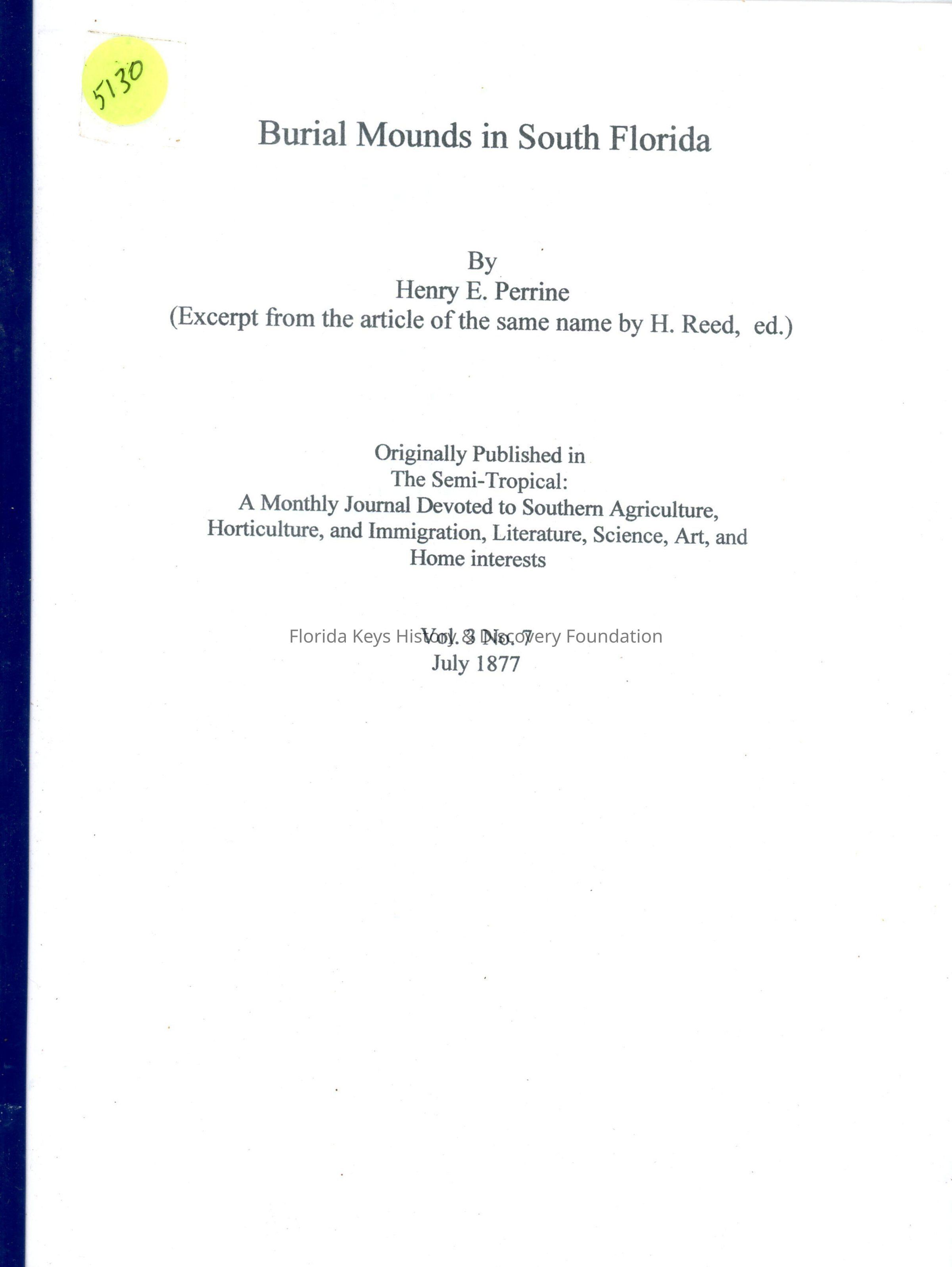 Burial Mounds in South FloridaEntry/Object ID
