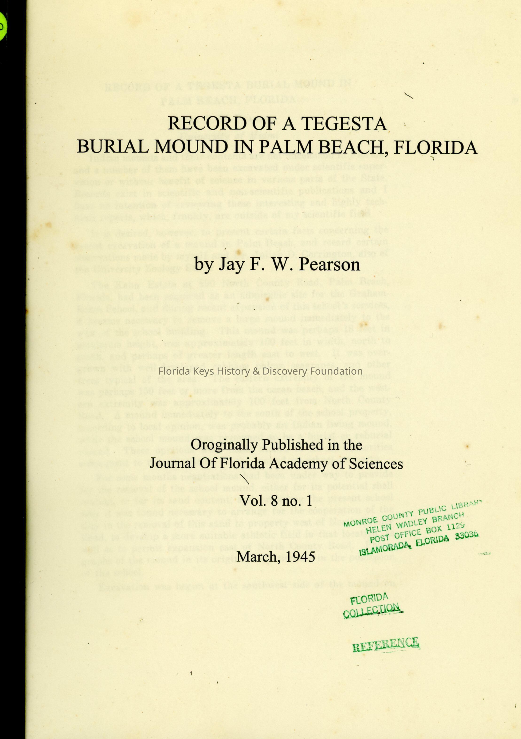 Records of a Tegesta Burial Mound in Palm Beach, FloridaEntry/Object ID