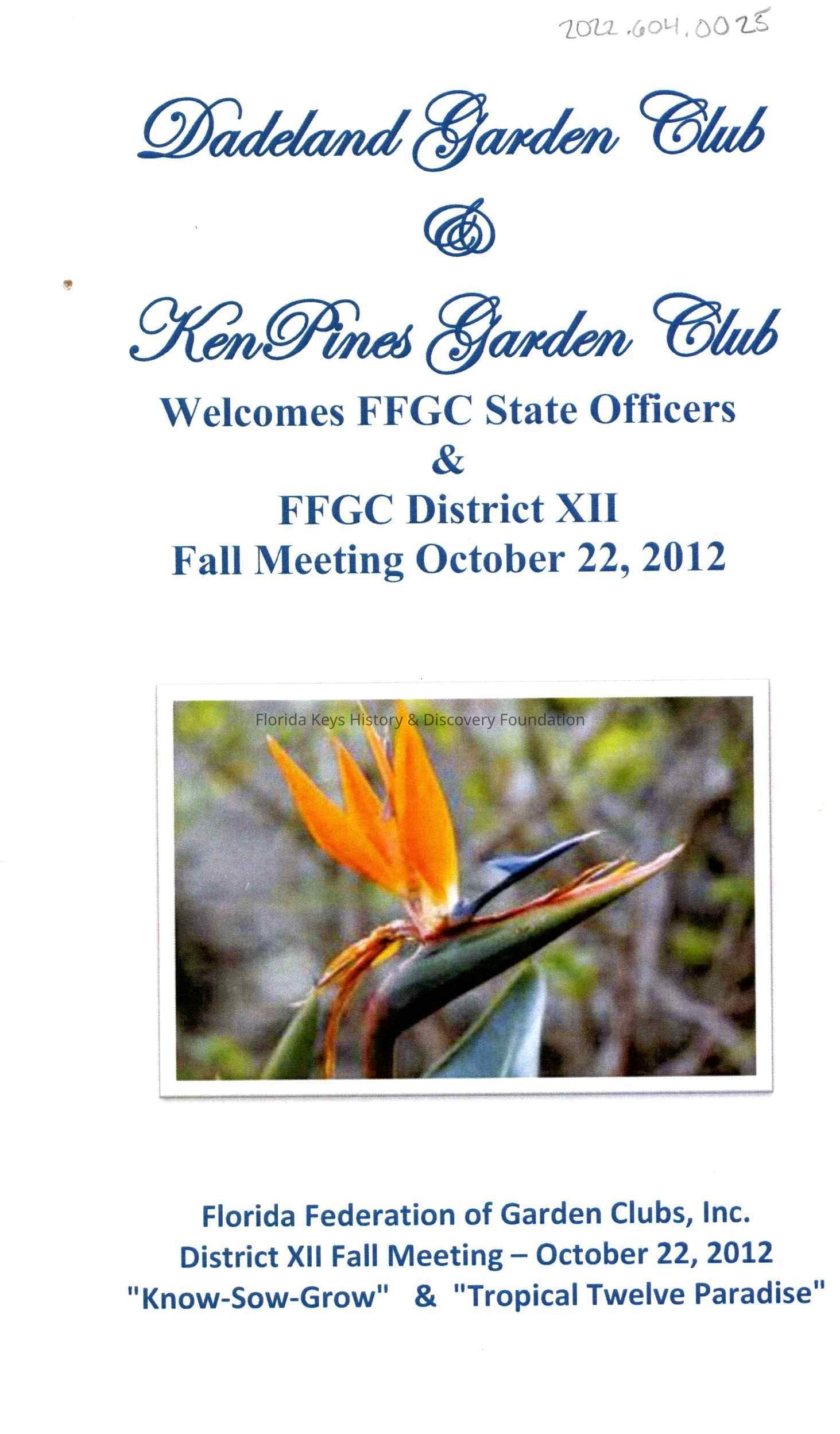 Dadeland Garden Club & Ken Pines Garden Club Welcome Pamphlet 2012Entry/Object ID