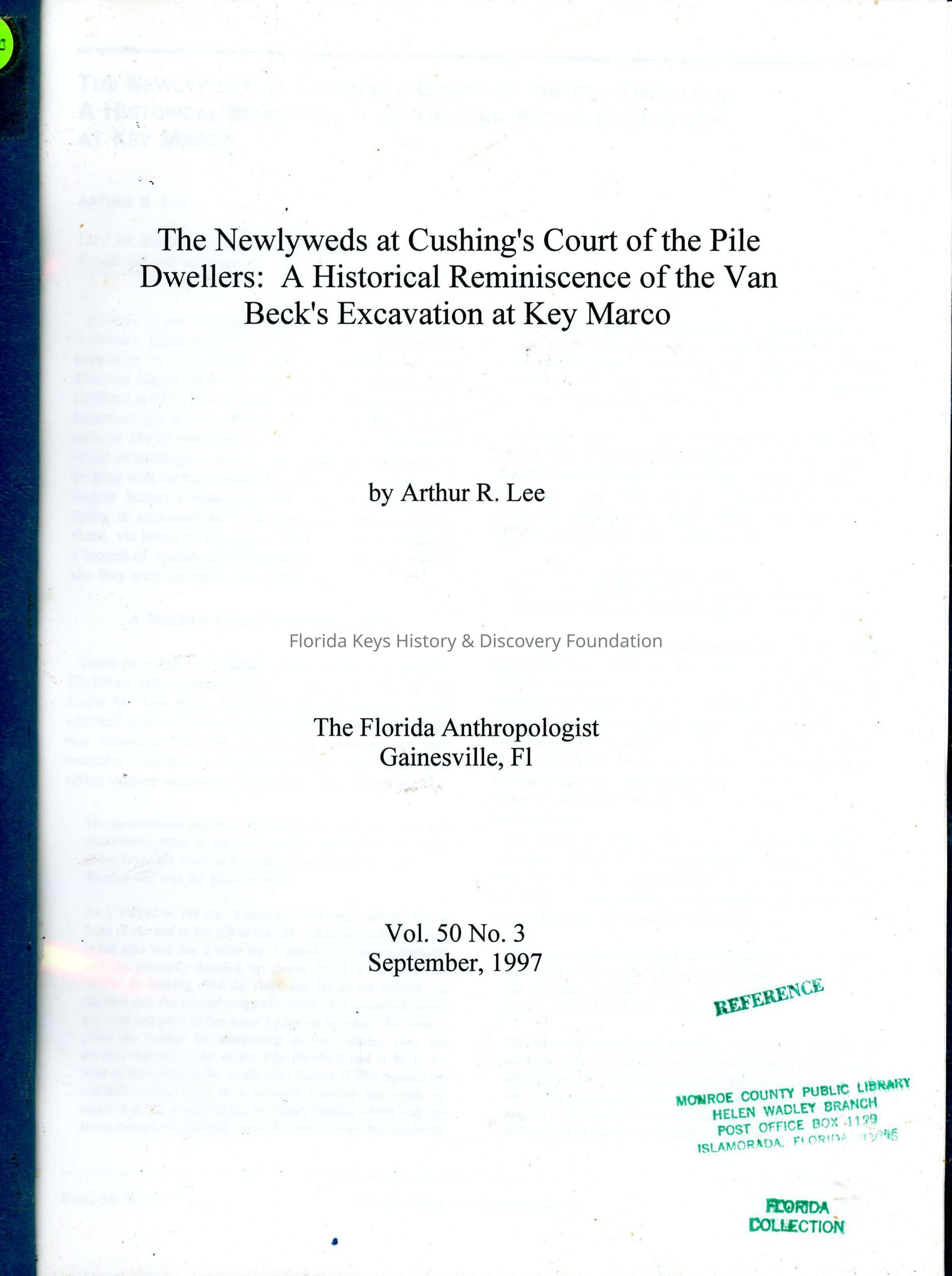 The Newlyweds at Cushing's Court of the Pile Dwellers: A Historical Reminiscence of the Van Beck's Excavation at Key MarcoEntry/Object ID