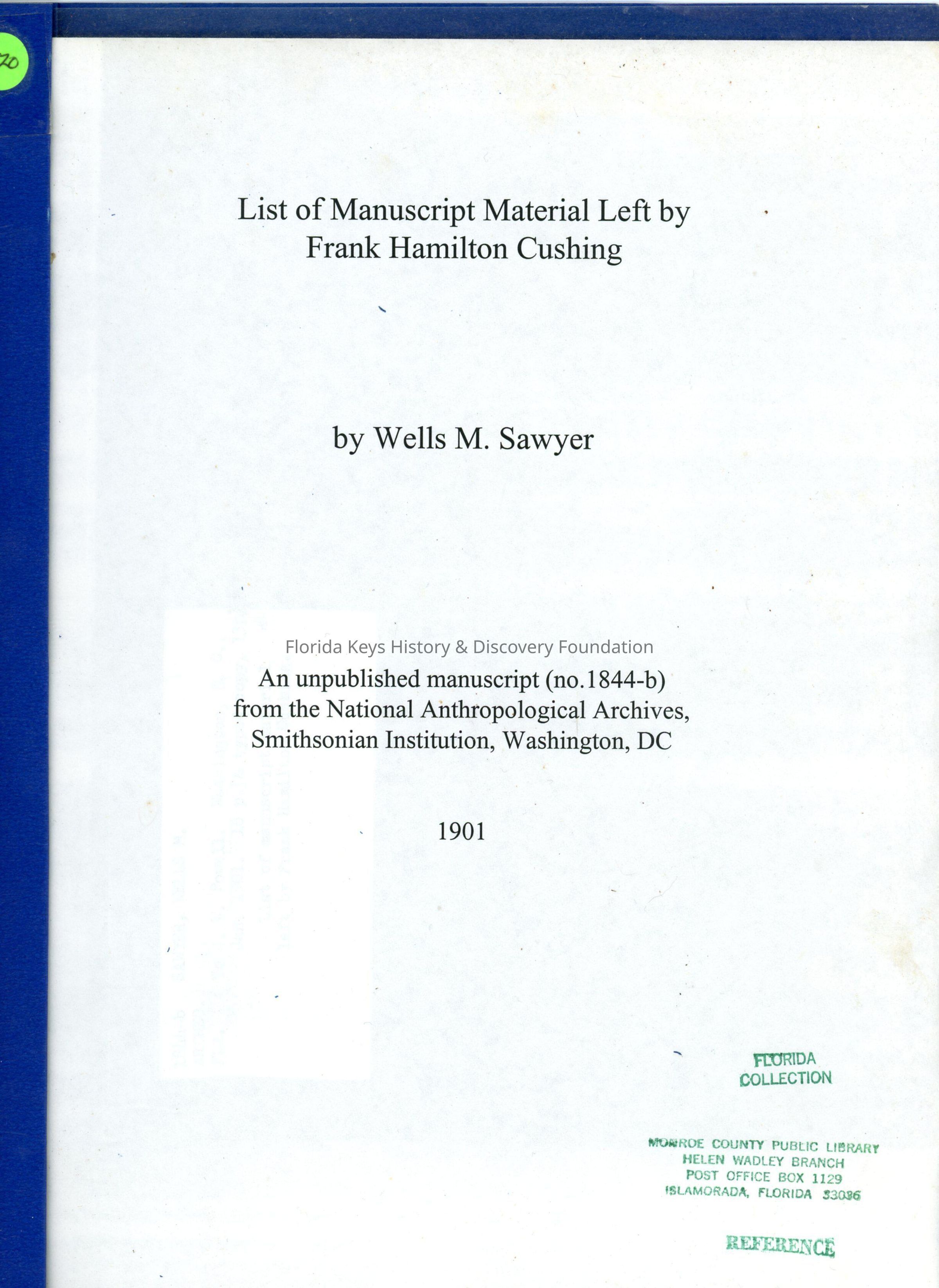 List of Manuscript Material Left by Frank Hamilton CushingEntry/Object ID
