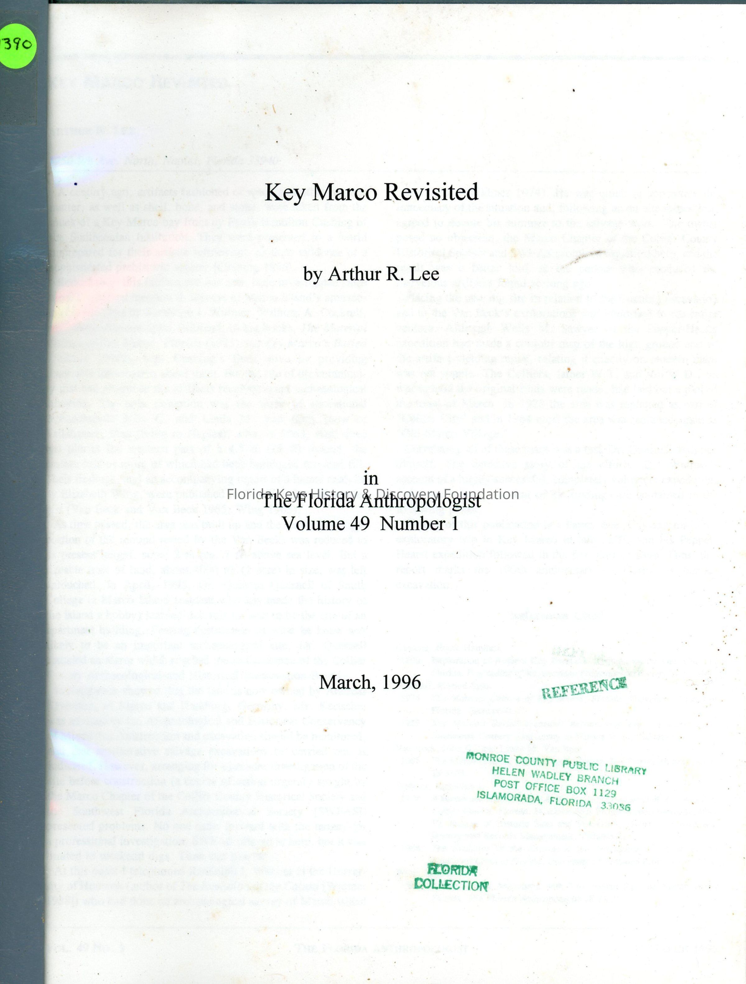Key Marco, Anthropology, Archaeological Sites, Native AmericanCollection