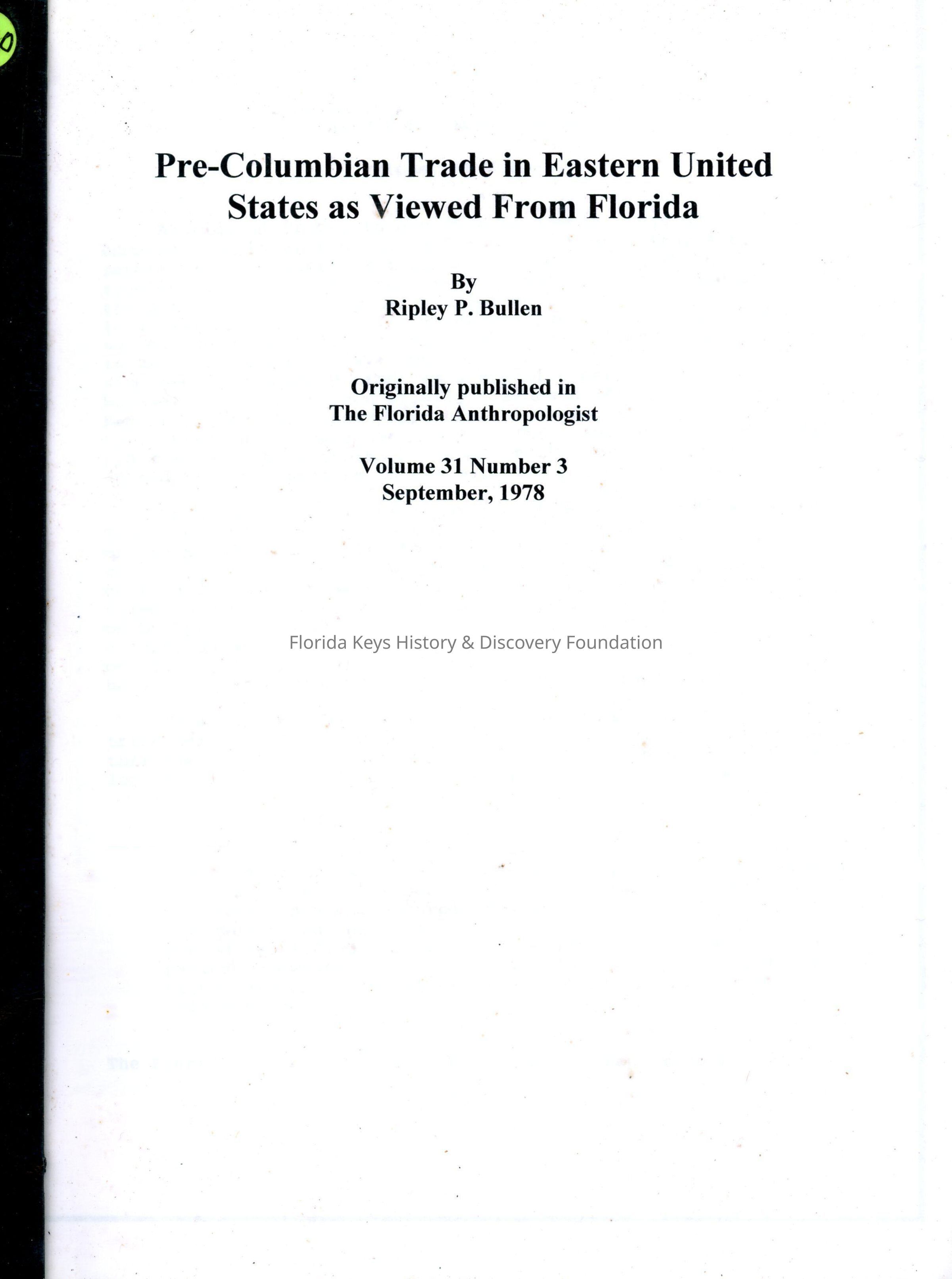 Pre-Columbian Trade in Eastern United States as Viewed From FloridaEntry/Object ID