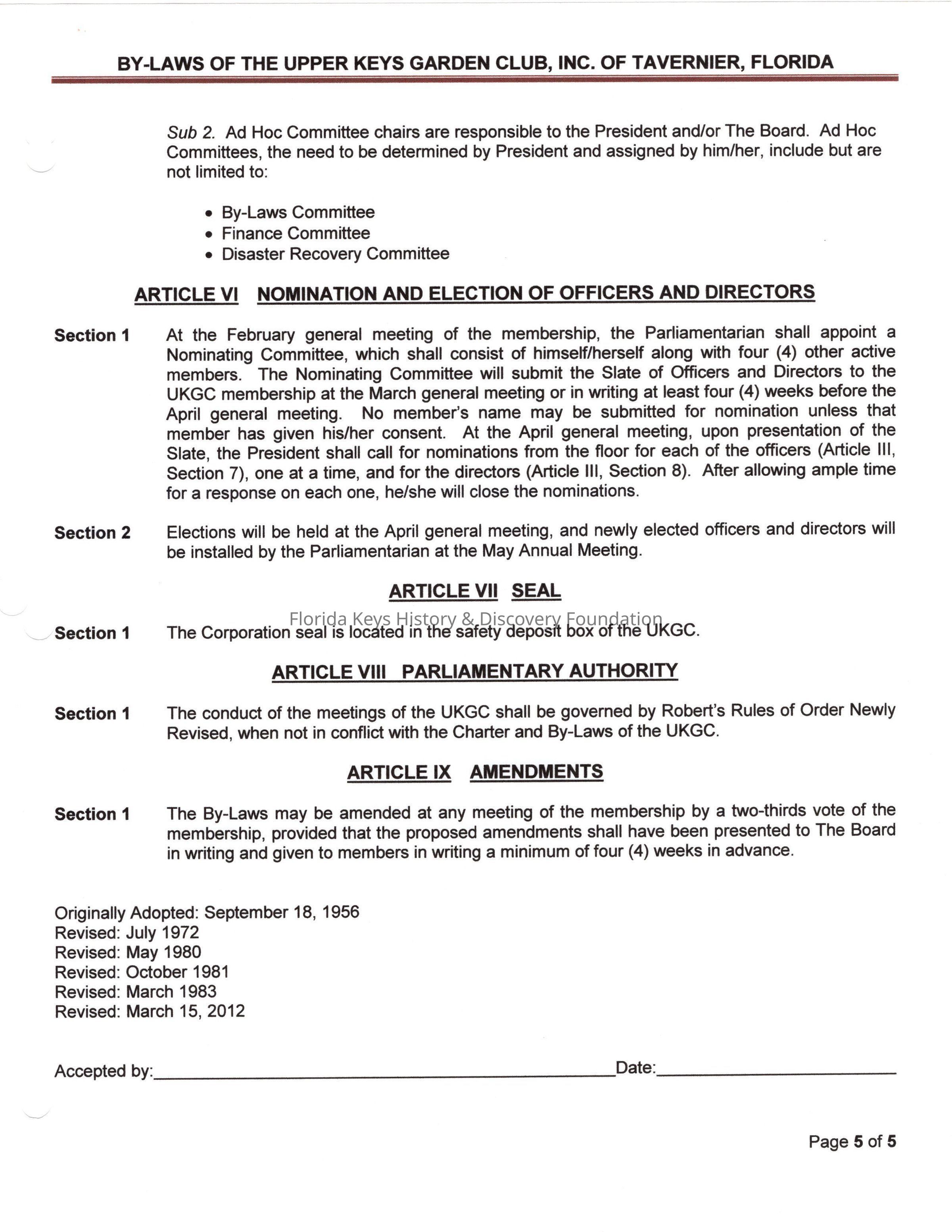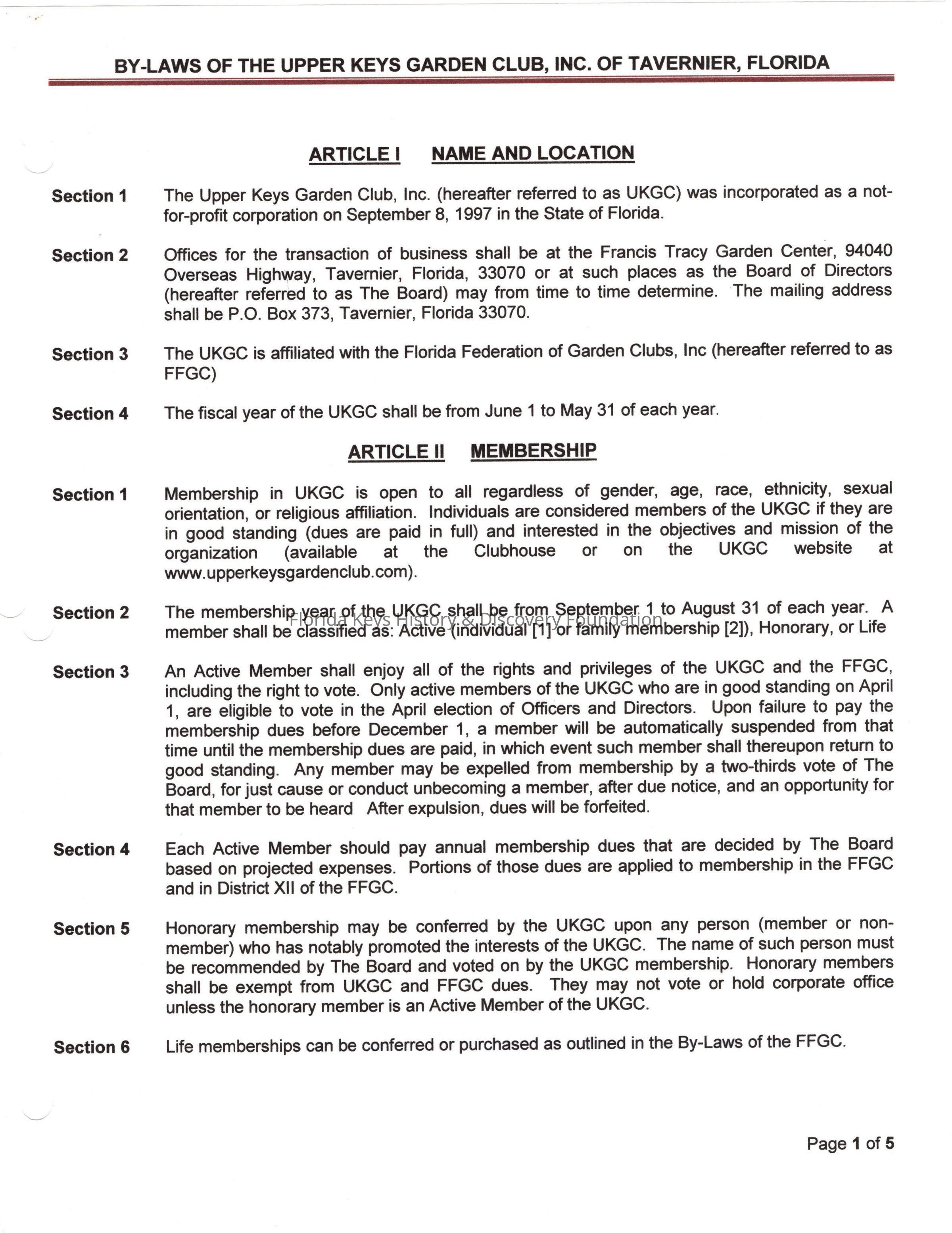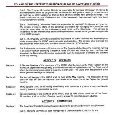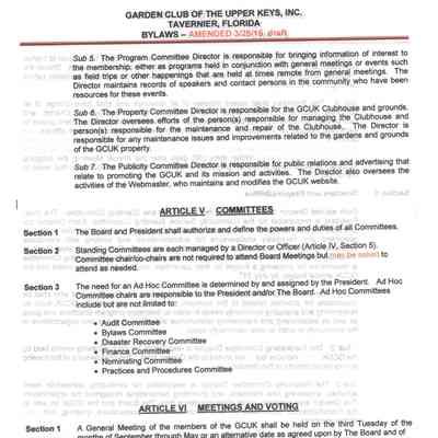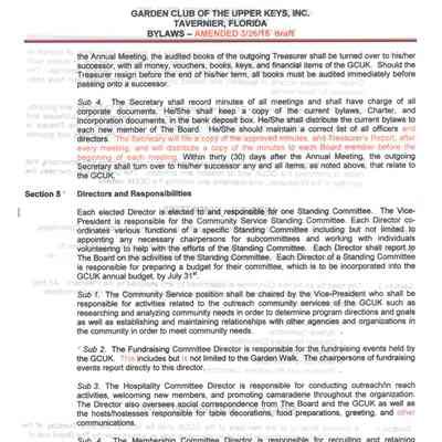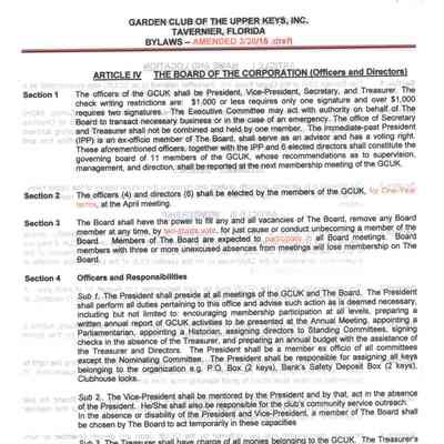Bylaws include articles on name and location, mission, membership, the board of the corporation, committees, meetings and voting, nomination and election of officers and directors.Created By