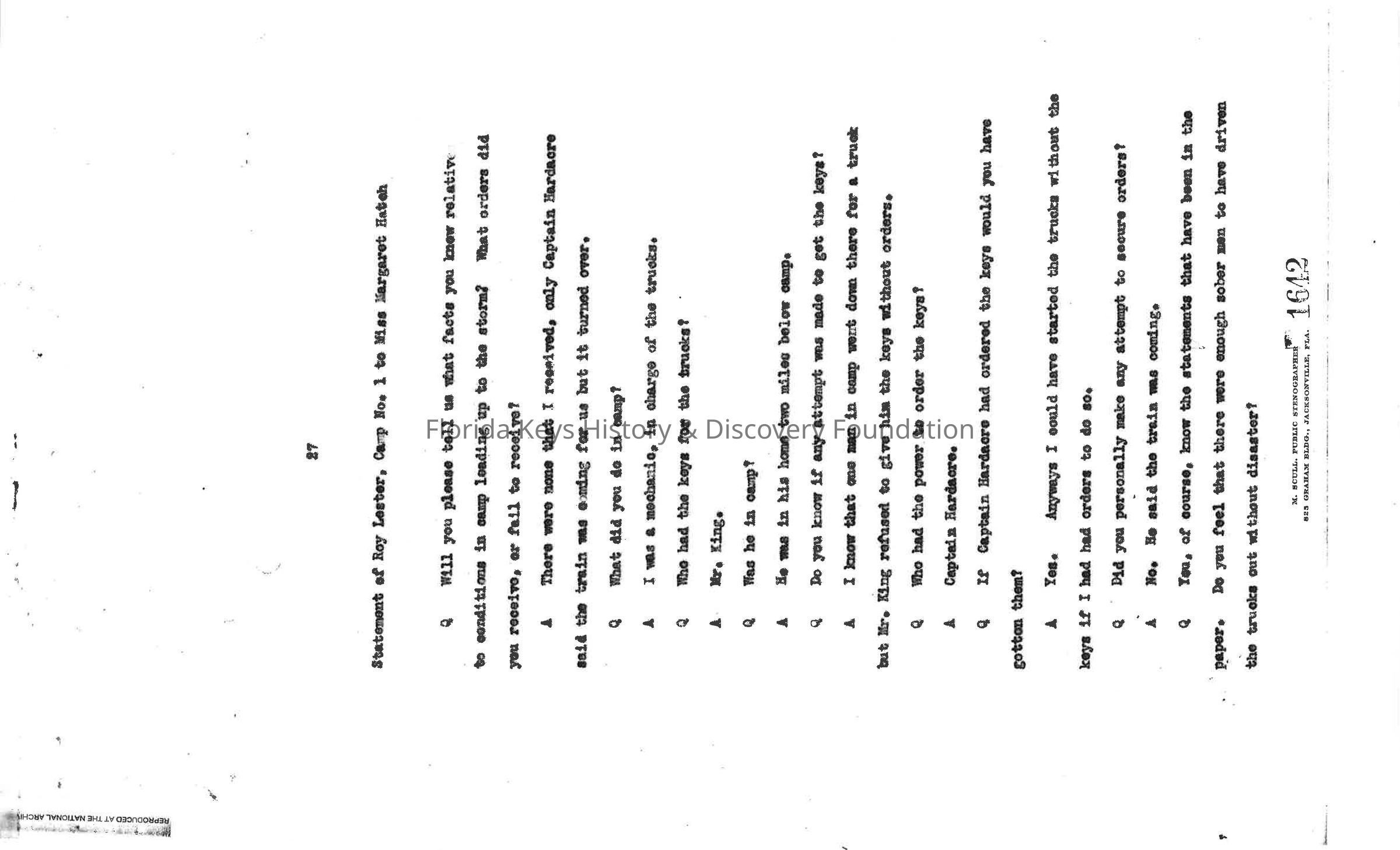 "Statement of Roy Lester, Camp No. 1 to Miss Margaret Hatch"Creator