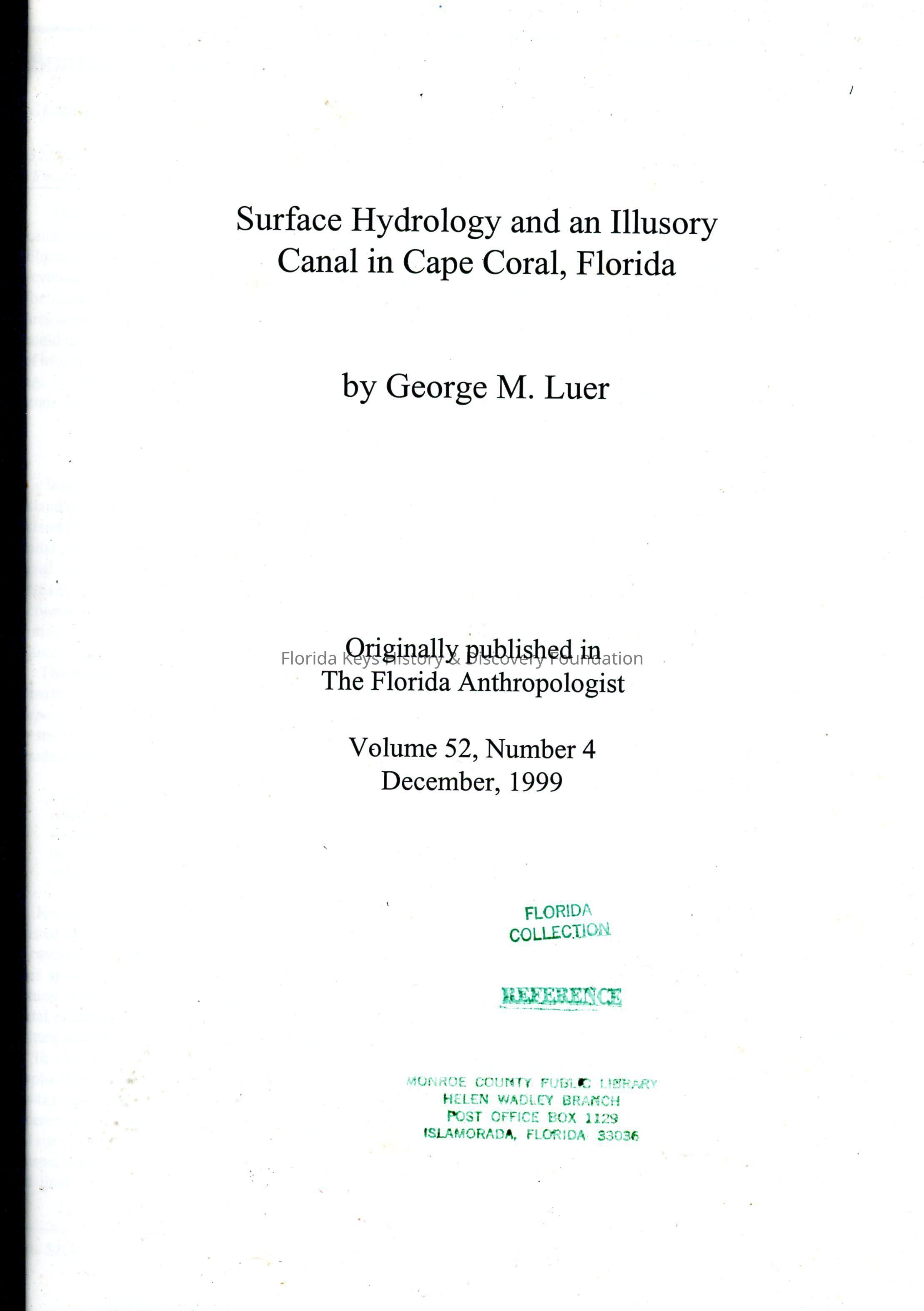 Surface Hydrology and an Illusory Canal in Cape Coral, FloridaEntry/Object ID