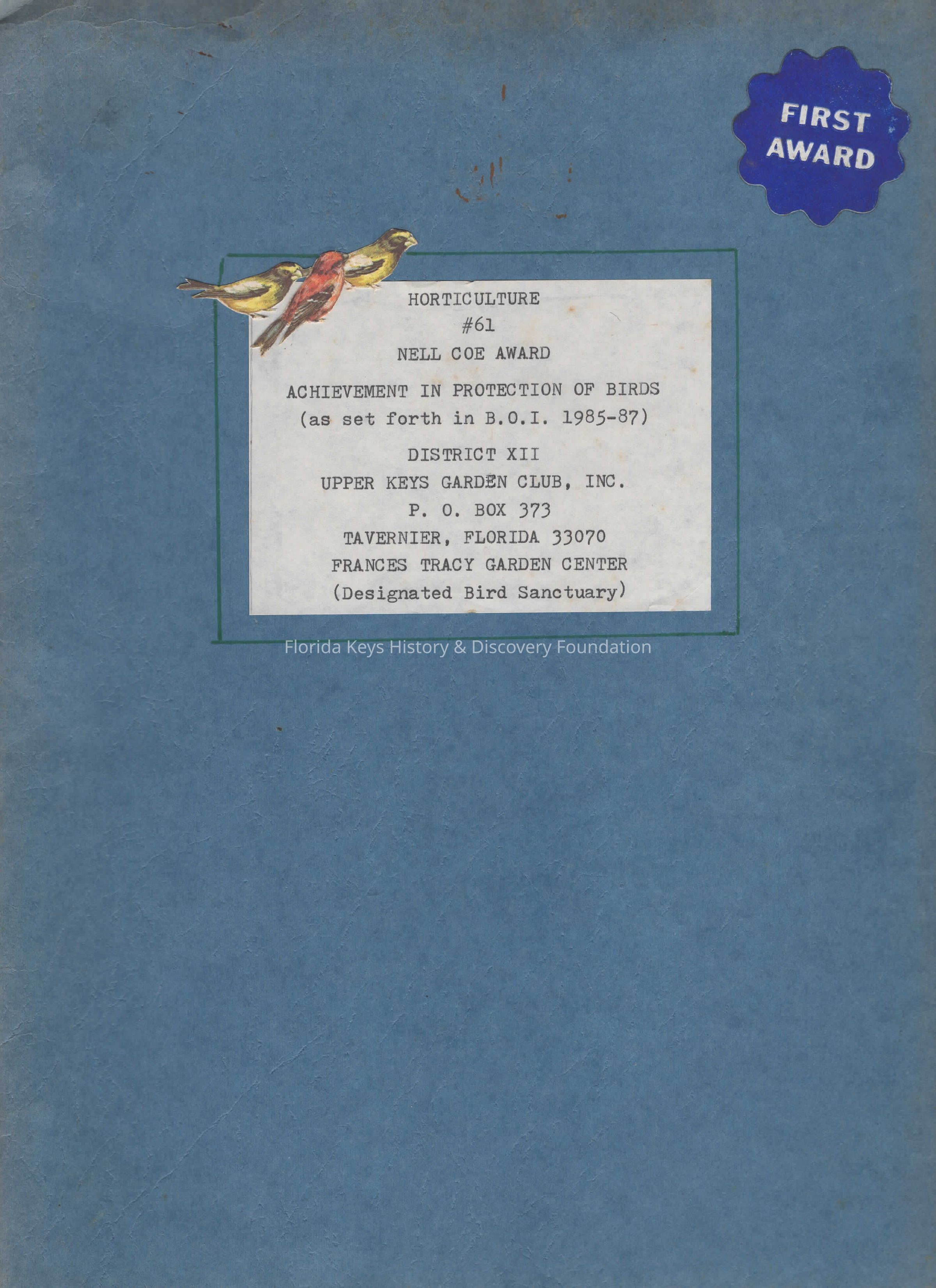 Award, Nell Cole Award, GCUK, Tavernier, Francis Tracy Garden Center, 1980s, 1985, 1986, 1987Context