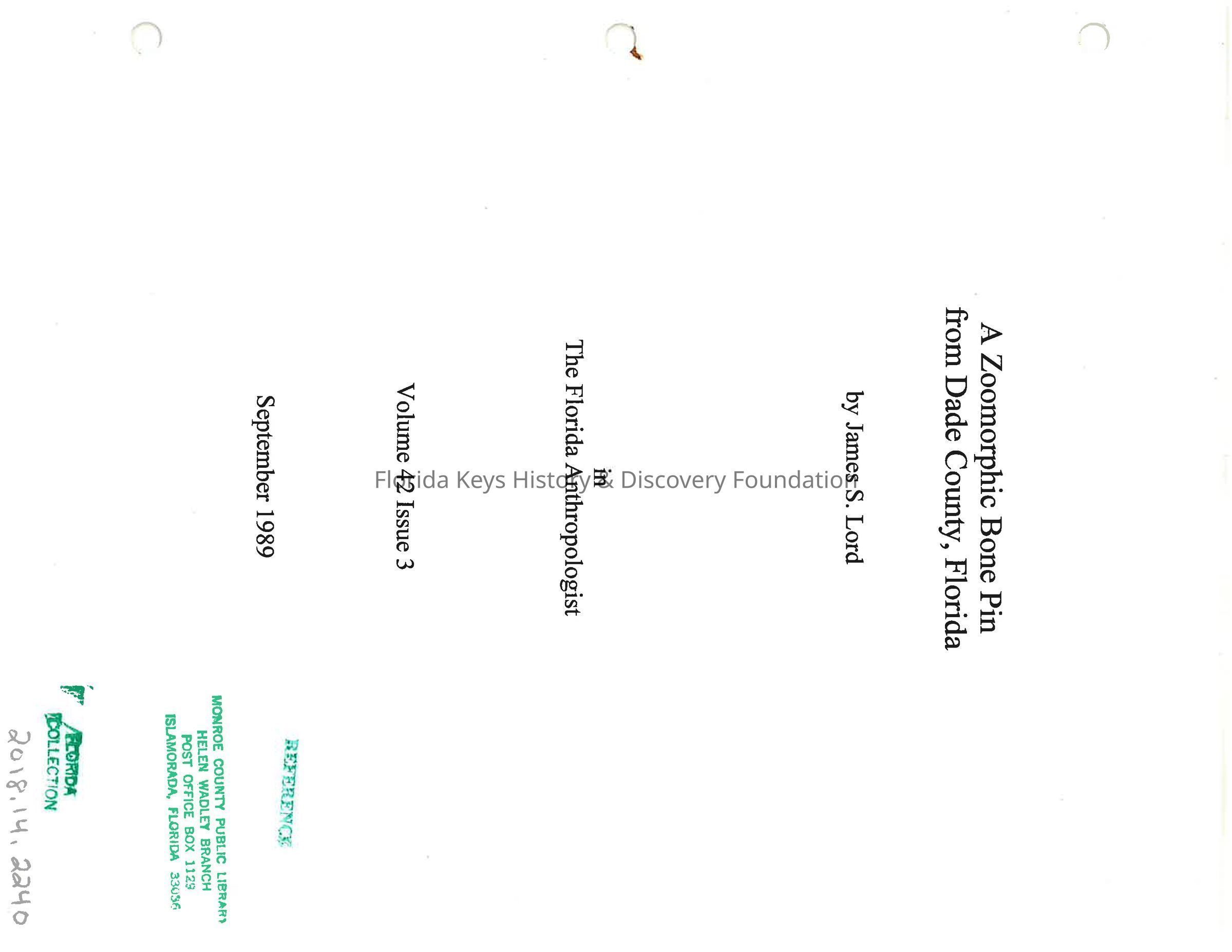 A zoomorphic Bone Pin from Dade County, FloridaEntry/Object ID