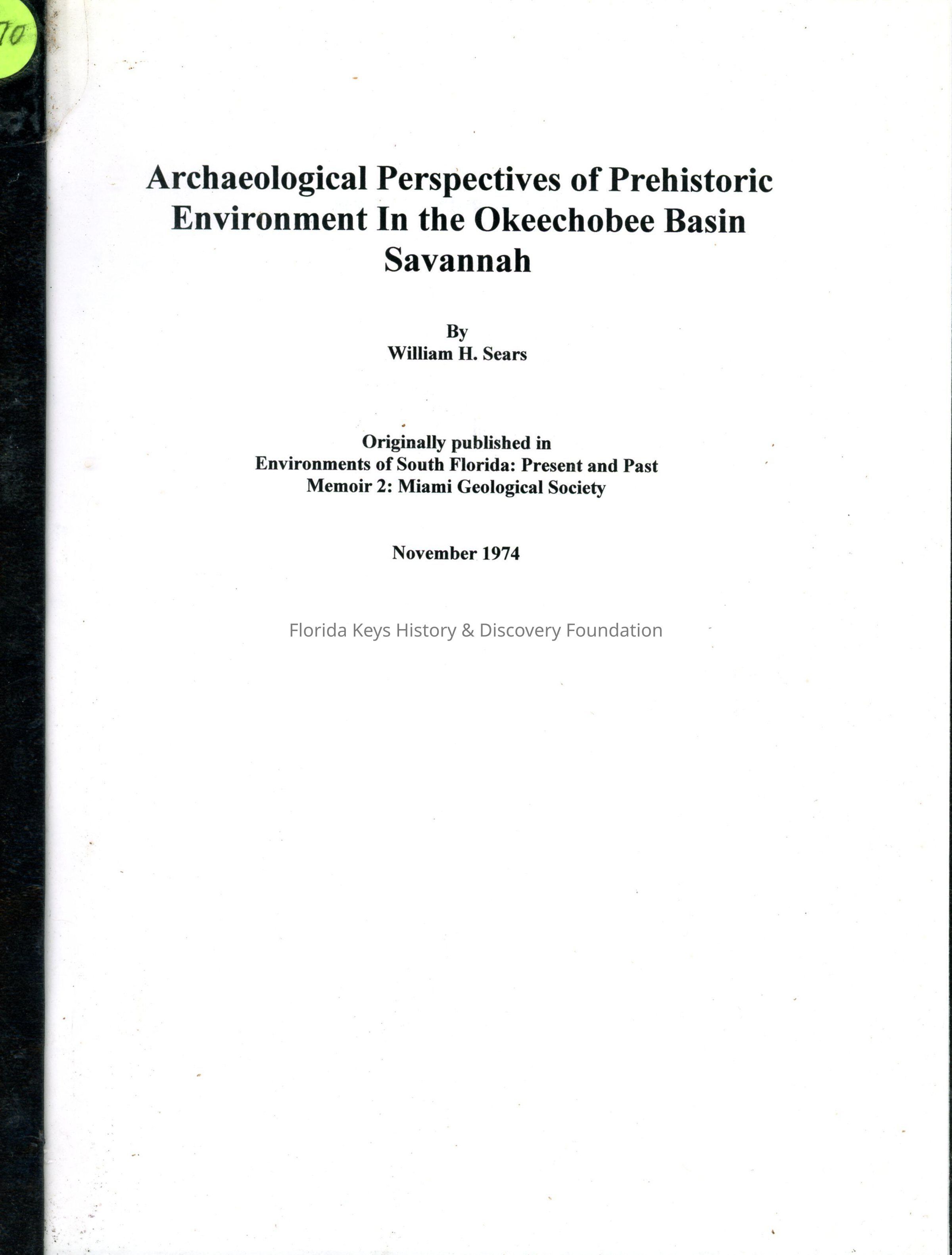 Archaeological Perspectives of Prehistoric Environment in the Okeechobee Basin SavannahEntry/Object ID