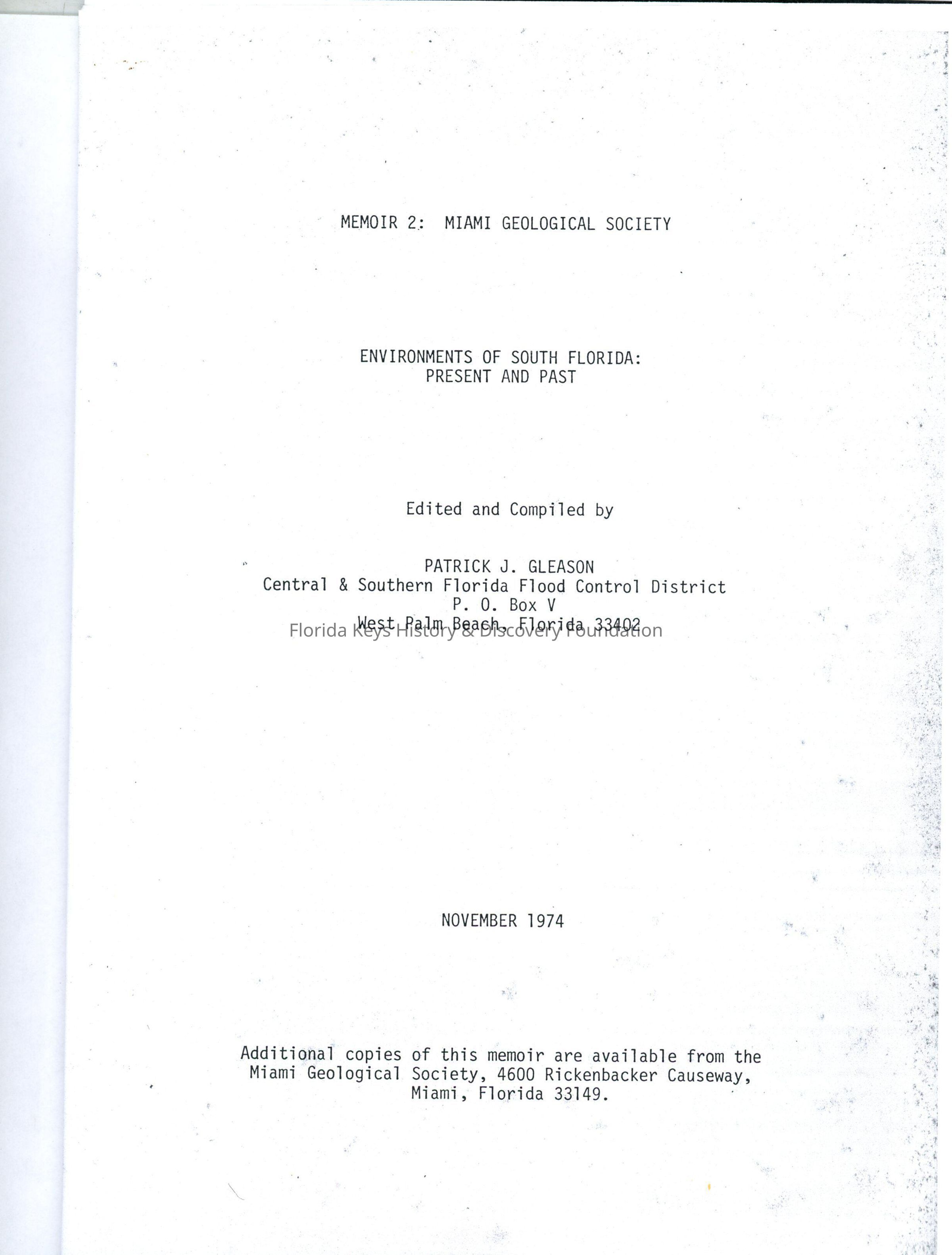 Environments of South Florida: Present and PastDate Published