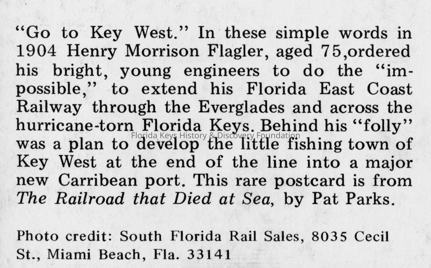 Flagler Railroad, Key WestDescription